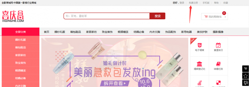 在商品右上角点击注册按钮