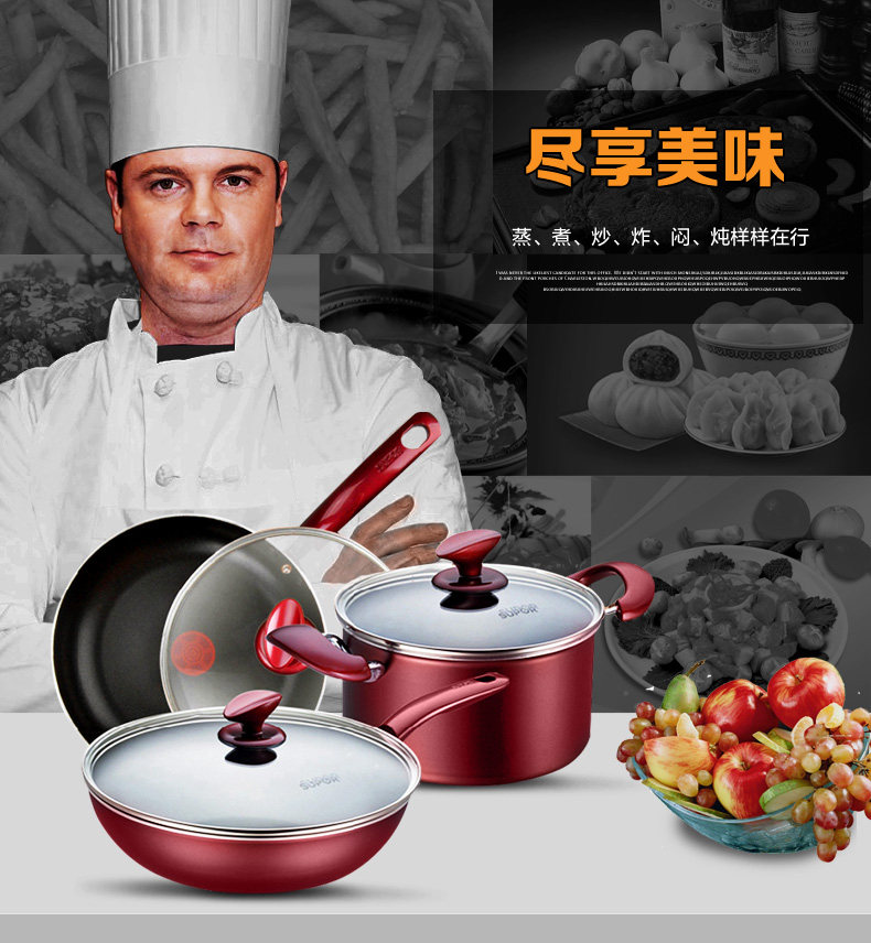 苏泊尔 锅具 套装三件套组合不粘锅无油烟锅T1314T平底锅汤锅炒锅