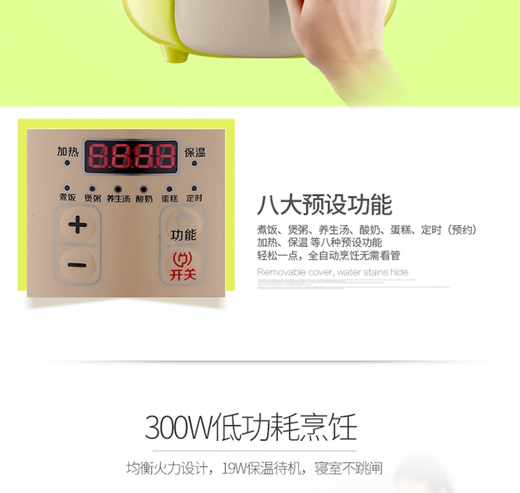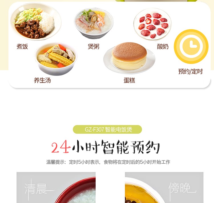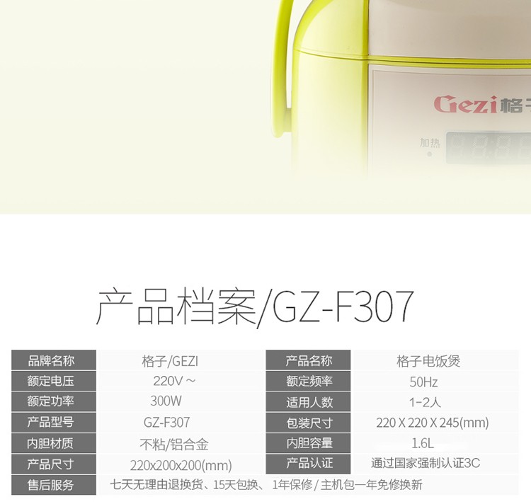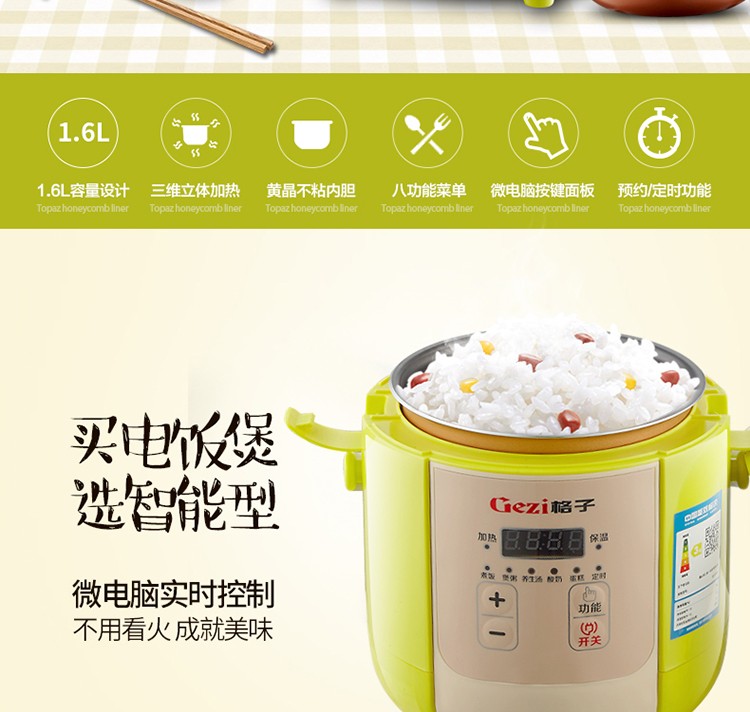 格子GZ-307智能电脑版迷你电饭煲1.6L 预约按键