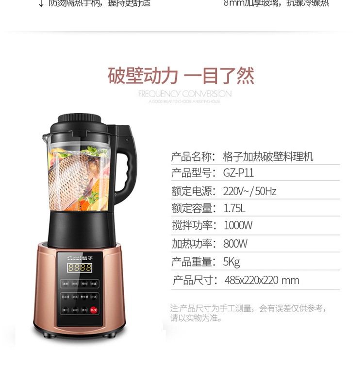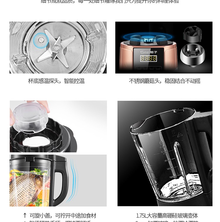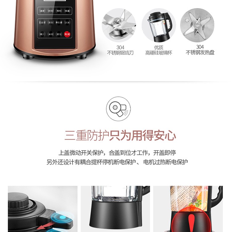 格子加热型家用破壁豆浆碎冰五谷米糊绞肉榨汁养生料理机