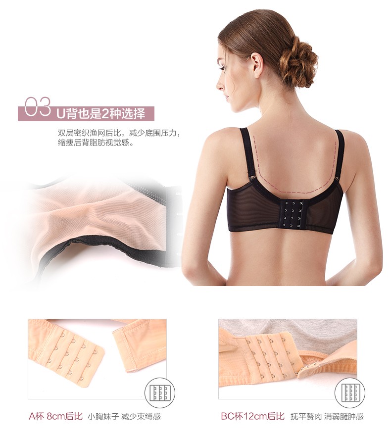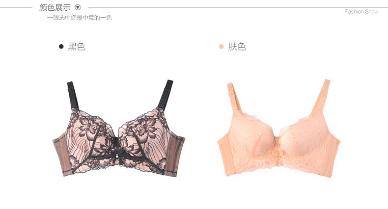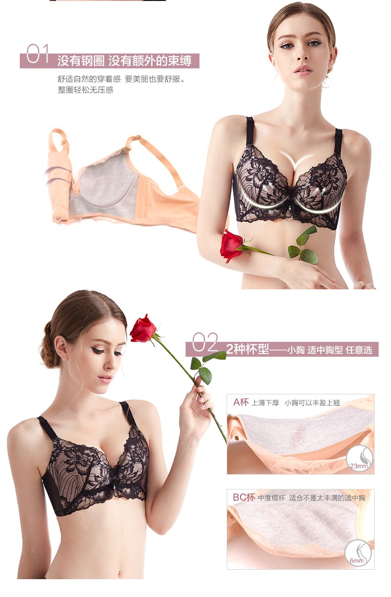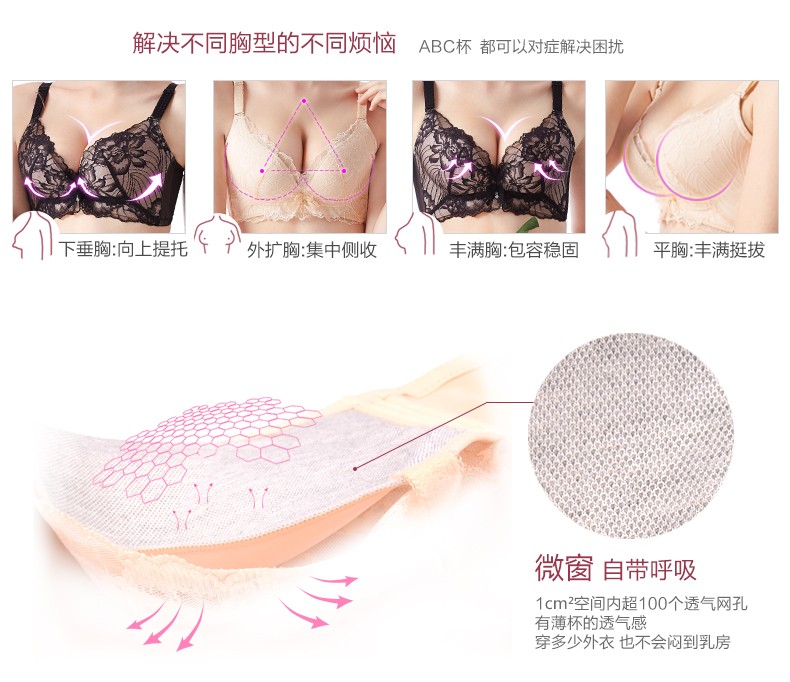 体会内衣BSK194 无钢圈超聚拢文胸秋冬深V性感蕾丝黑色透肤厚薄模杯女士内衣