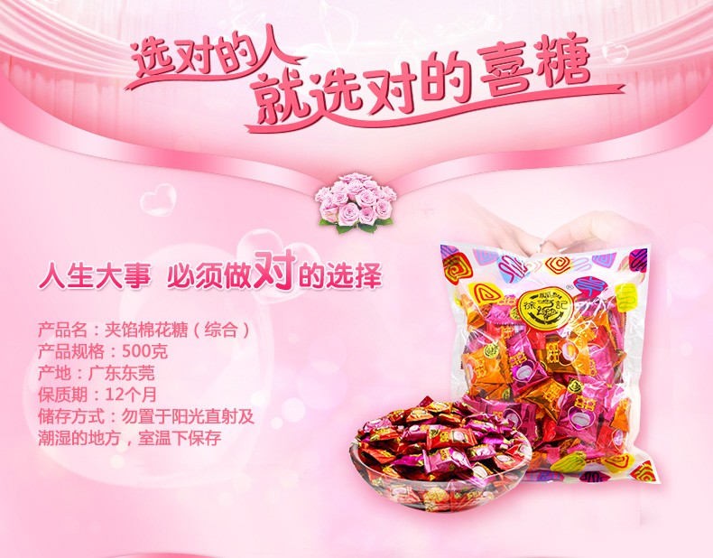 徐福记-夹馅棉花糖500g袋 婚庆喜糖软糖(混合装)散装喜糖