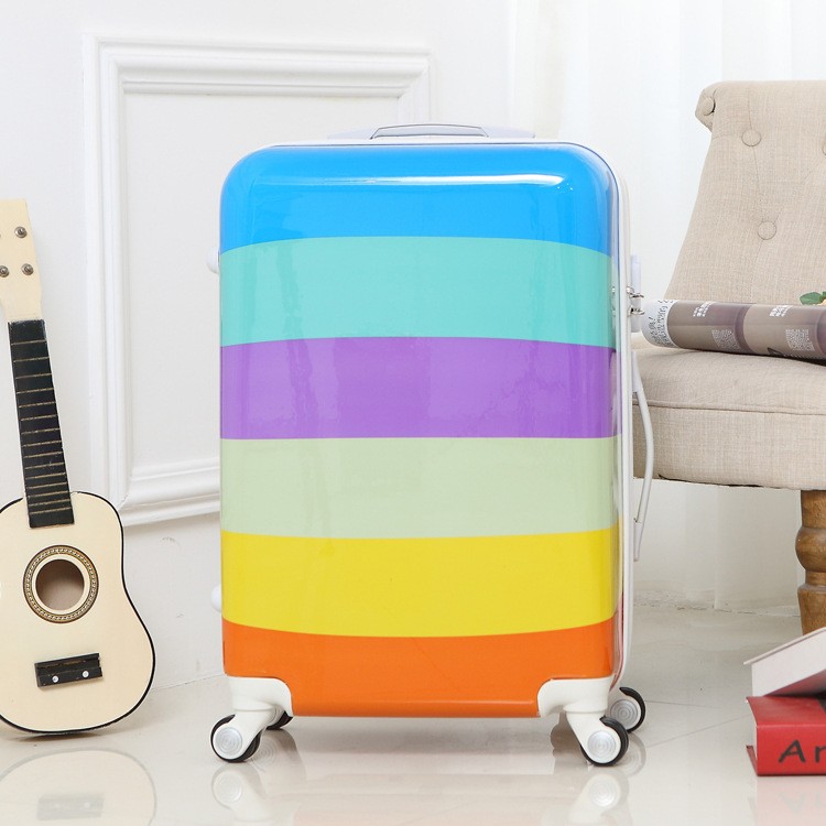 韩版女生外出必备炫丽糖果彩虹色拉杆旅游箱 PC20 24寸万向行李箱