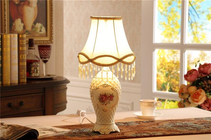 欧式台灯复古客厅书房床头灯具象牙瓷灯饰鎏金婚房台灯