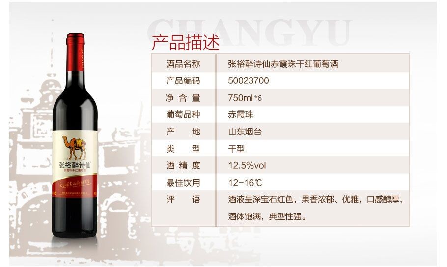 张裕醉诗仙赤霞珠 6支