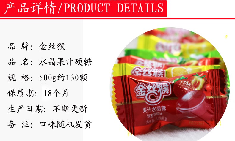 金丝猴糖果水果糖结婚喜糖果汁水晶硬糖500g喜庆喜糖果味