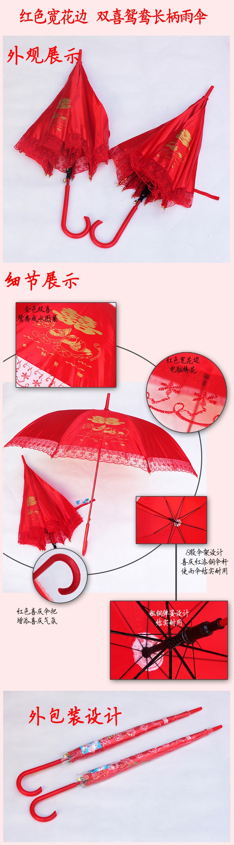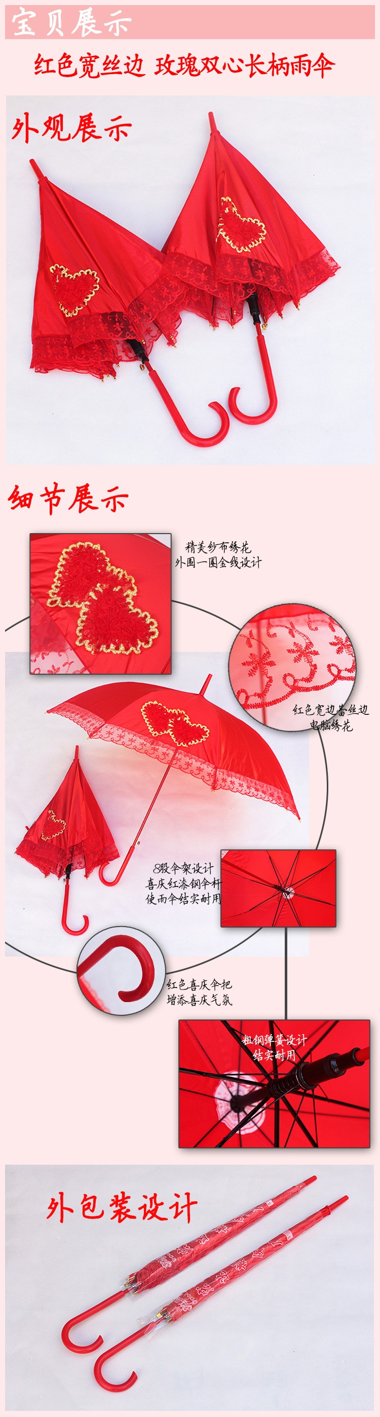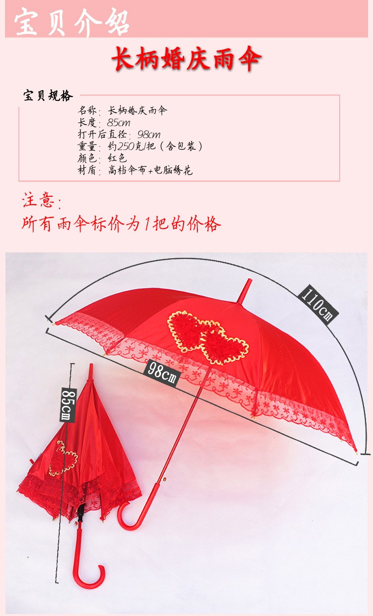 结婚婚庆用品 婚礼新娘新郎红雨伞 长柄大红伞 直杆蕾丝边