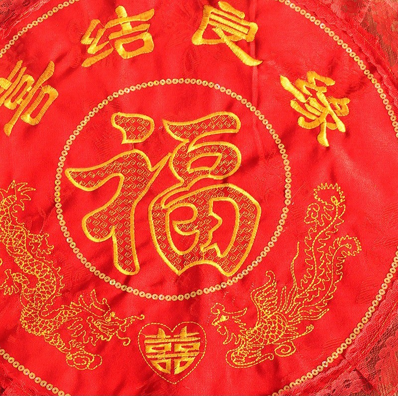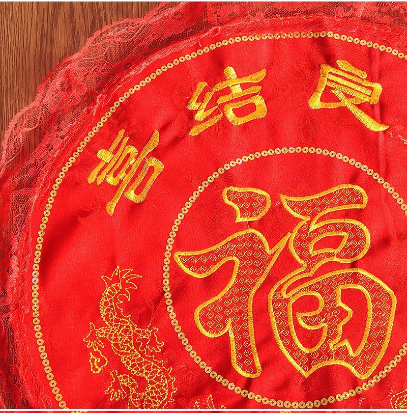 婚庆结婚喜庆用品 新娘跪垫 蕾丝花边 坐福垫椅子垫 福字刺绣龙凤