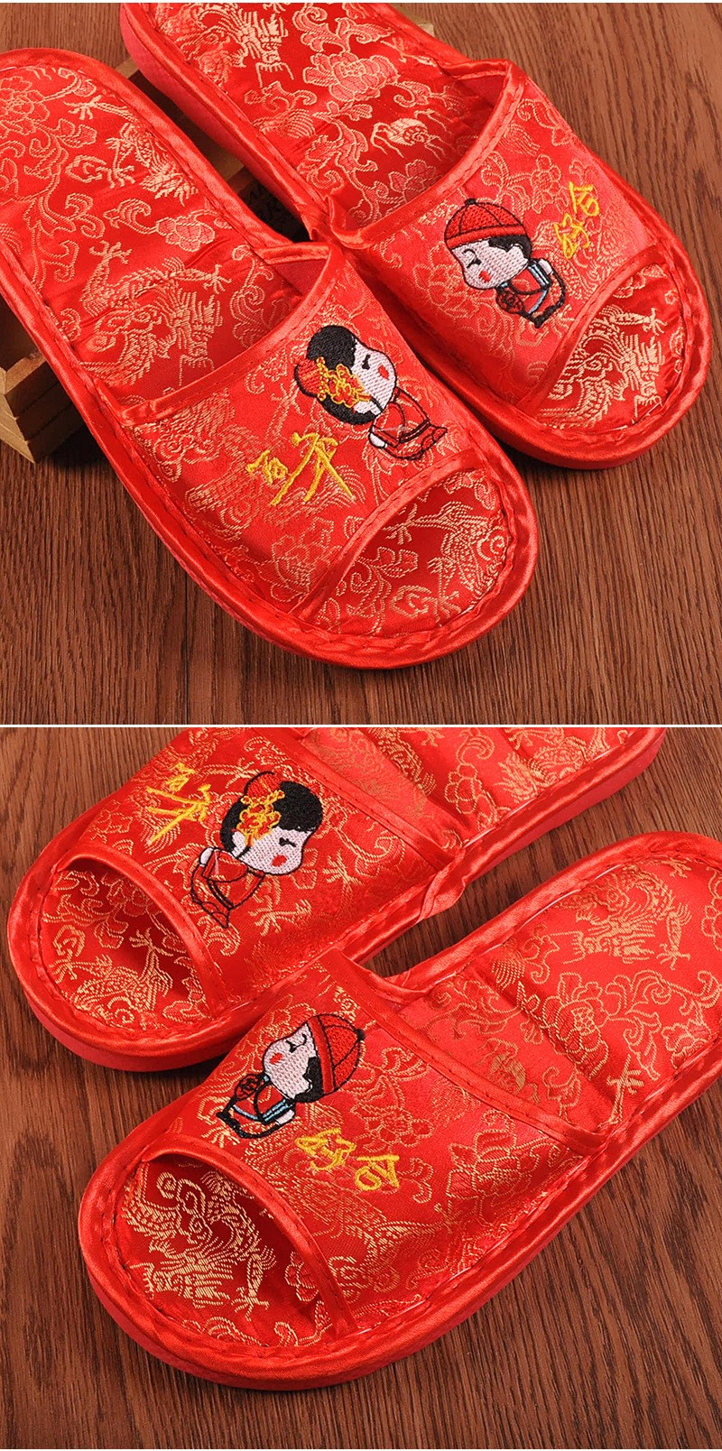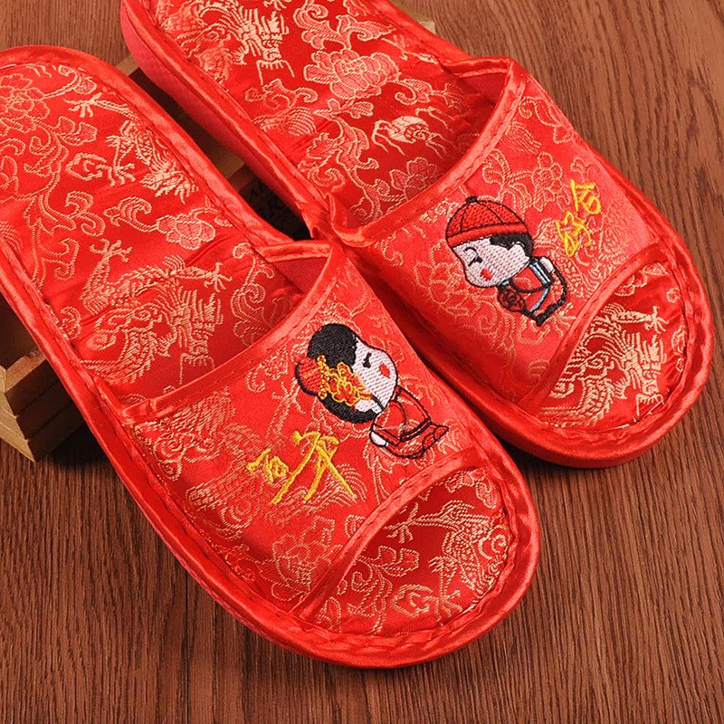 婚庆结婚用品 老公老婆喜庆新婚拖鞋 娃娃百年好合加厚款