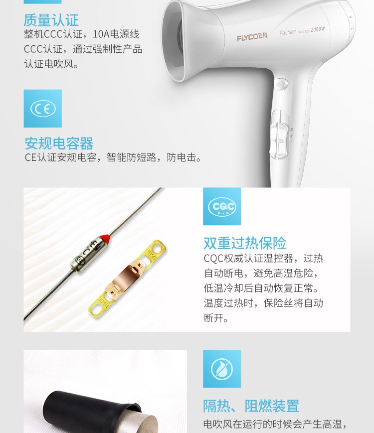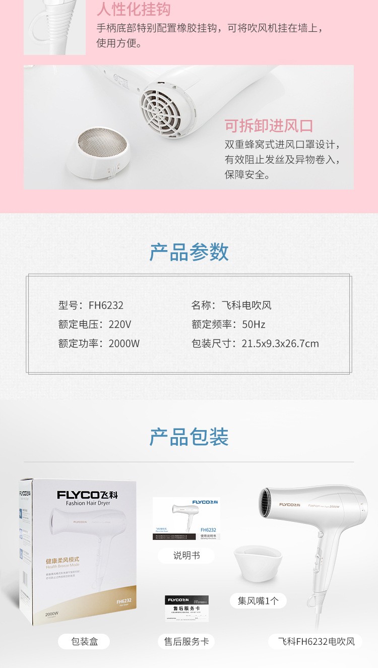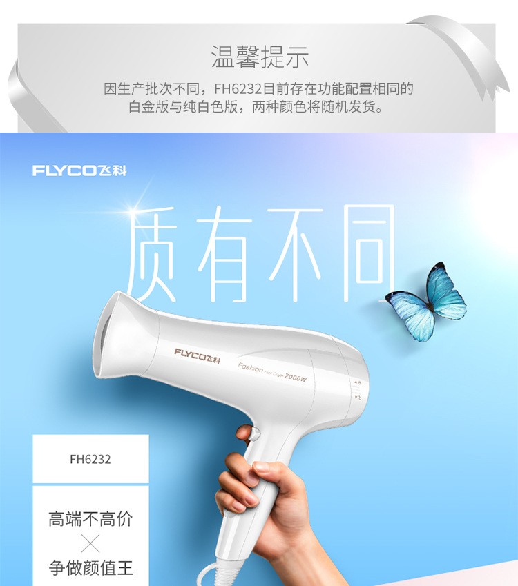 飞科电吹风机FH6232恒温护发 冷热风 理发店大功率2000W