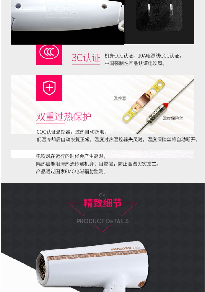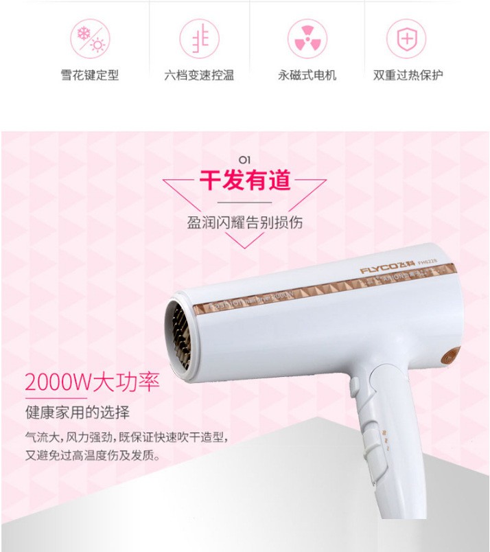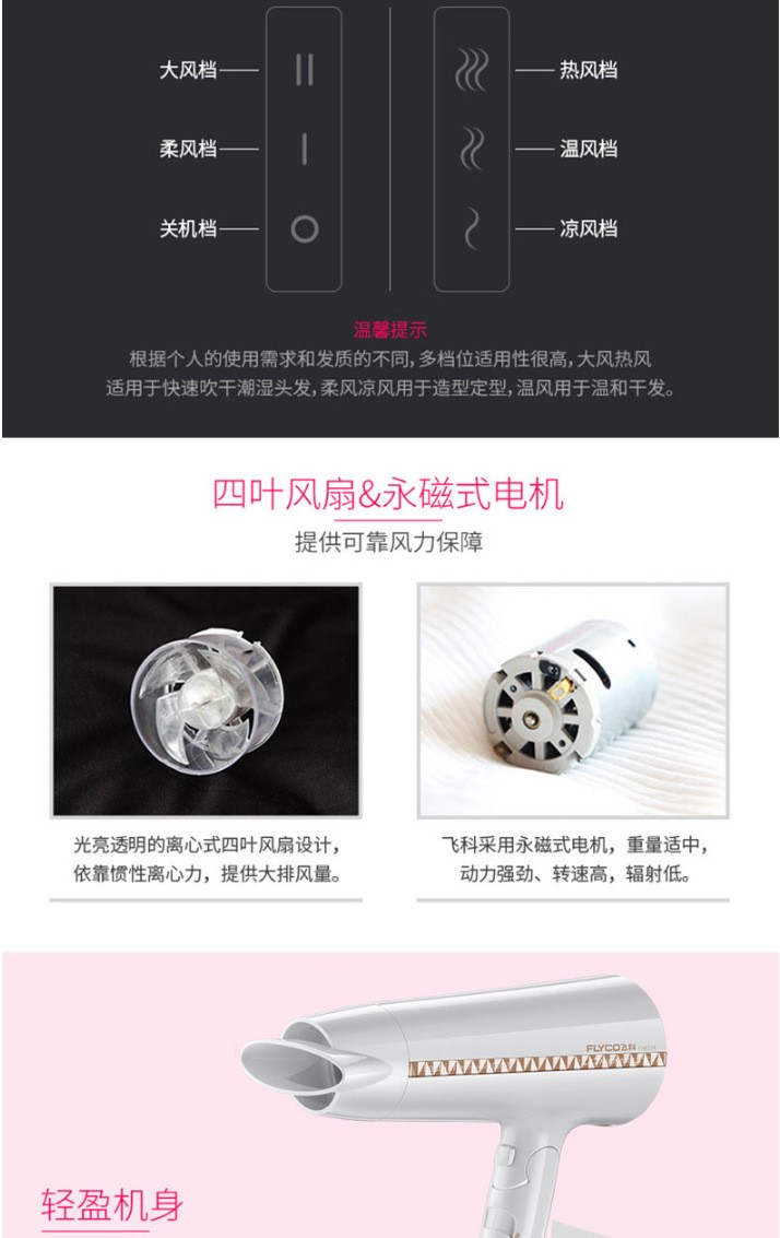 飞科FH6228大功率电吹风机 2000W发廊理发店专用水润负离子可折叠