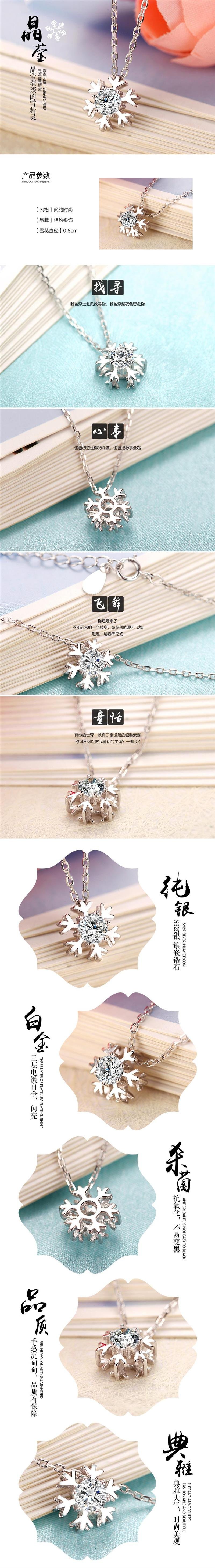 相约银饰925银项链 镶嵌锆石电镀白金 925银项链(雪绒花)造型吊坠项链
