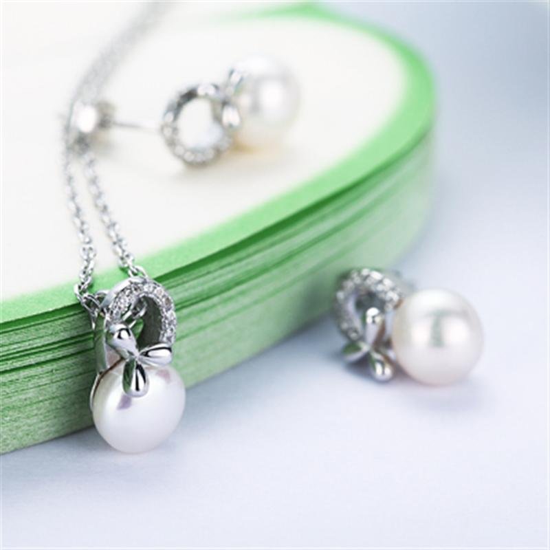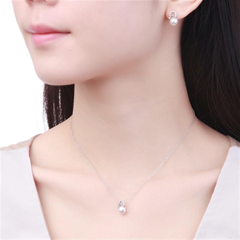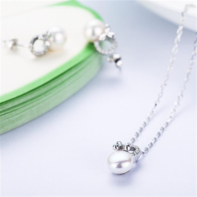 相约银饰S925镶嵌天然珍珠三叶草项链简约气质