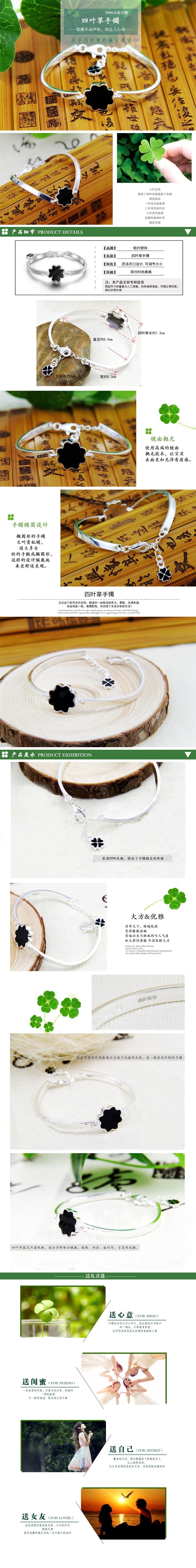相约银饰 s990足银四叶草手镯 灵活开口设计 可调节大小 简约时尚典雅