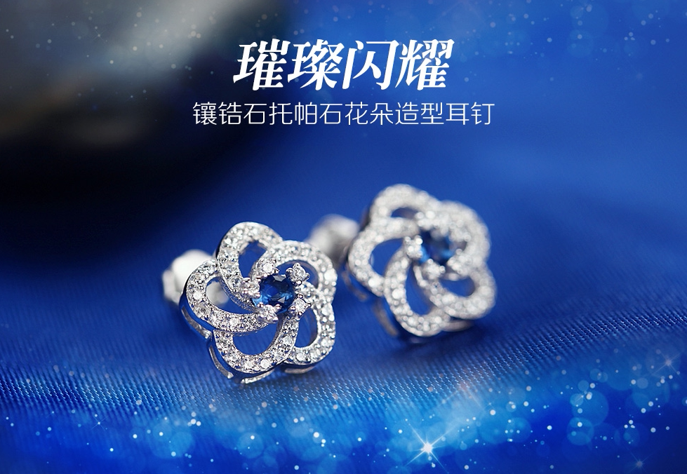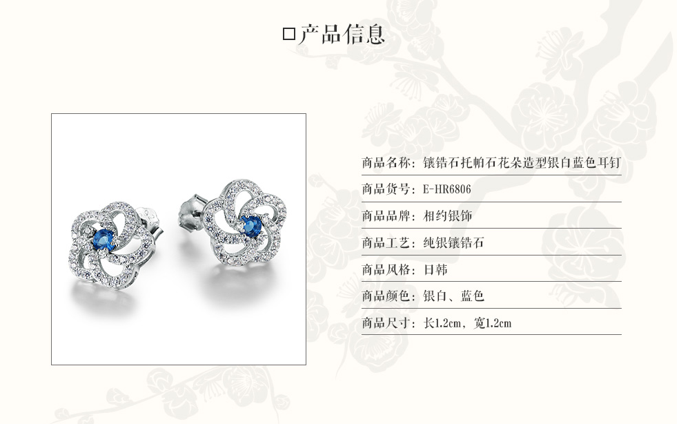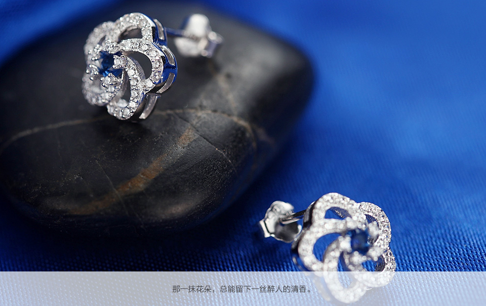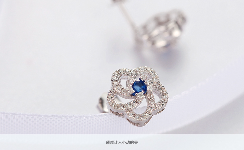 相约银饰925纯银镶钻花朵耳钉 925银耳钉(浪漫之花)