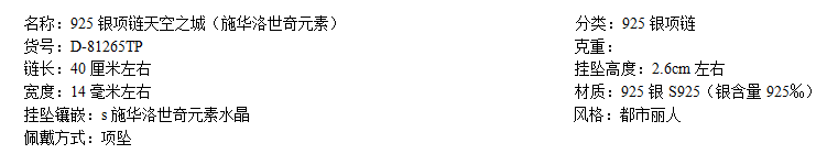 相约银饰925银项链天空之城(施华洛世奇元素) 银饰系列项链、耳钉