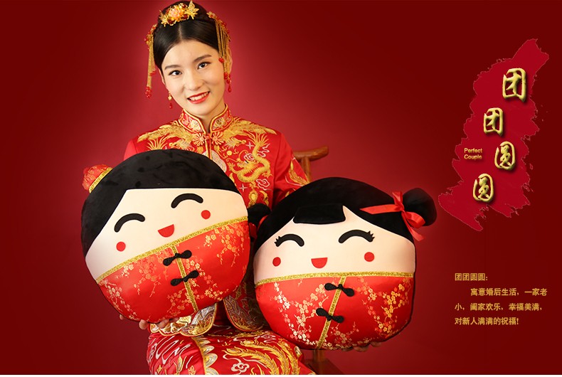 波波娃 大号创意结婚礼物婚庆压床一对娃娃毛绒玩具情侣抱枕公仔