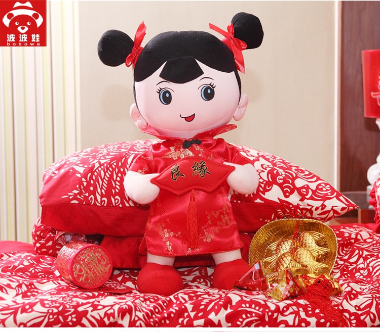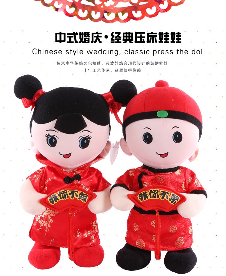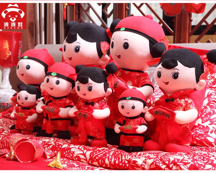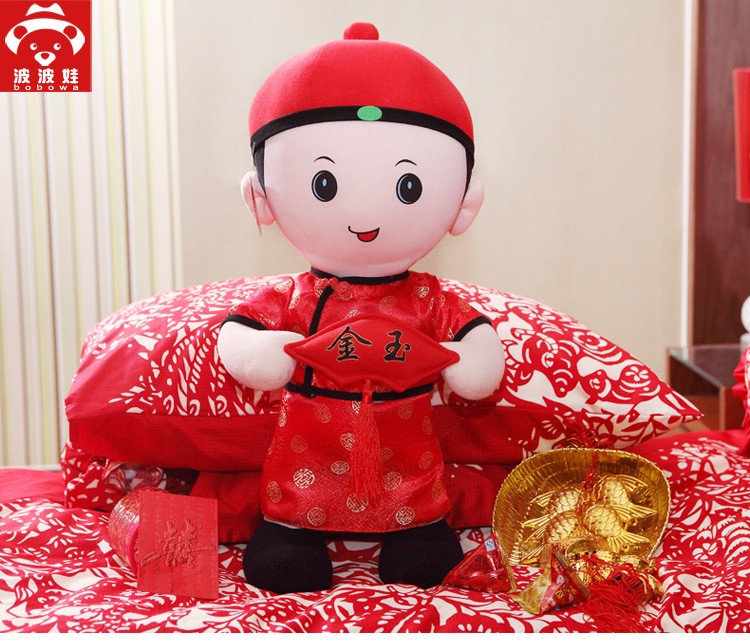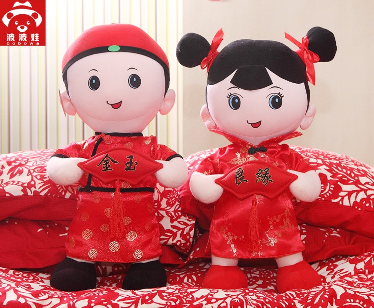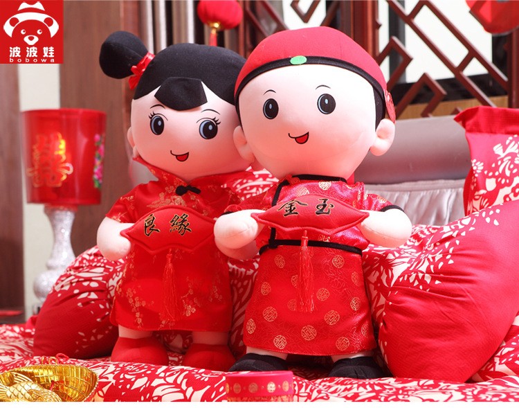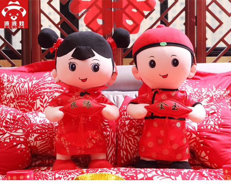 中式金童玉女婚庆礼品结婚礼物压床娃娃公仔毛绒玩具