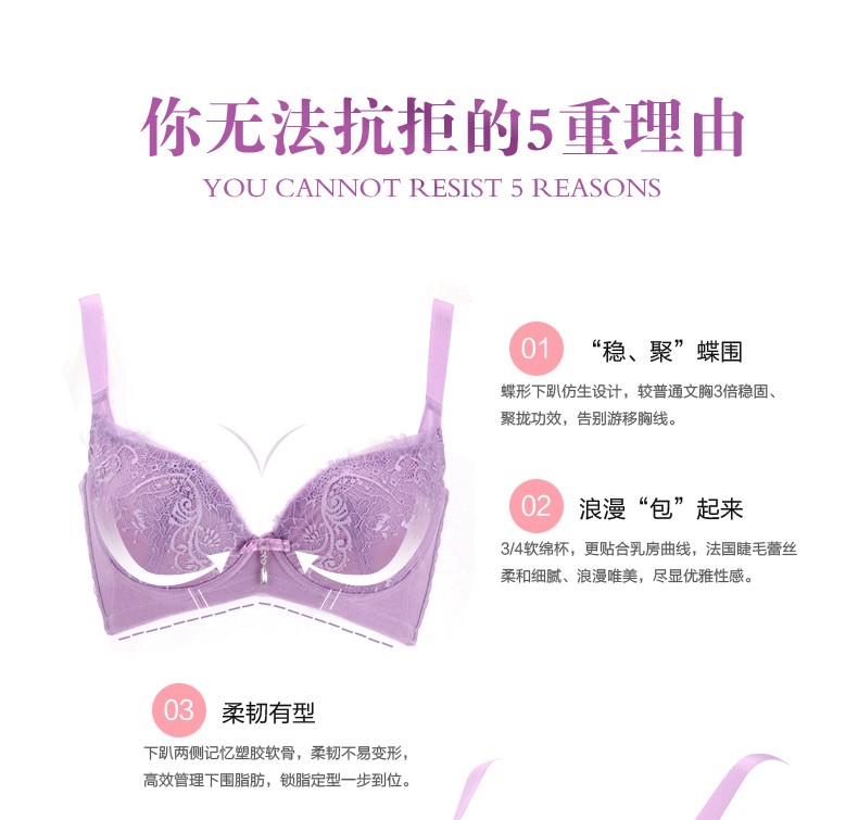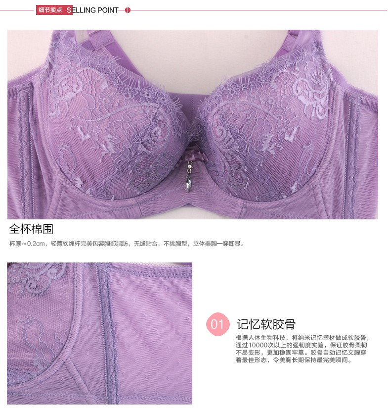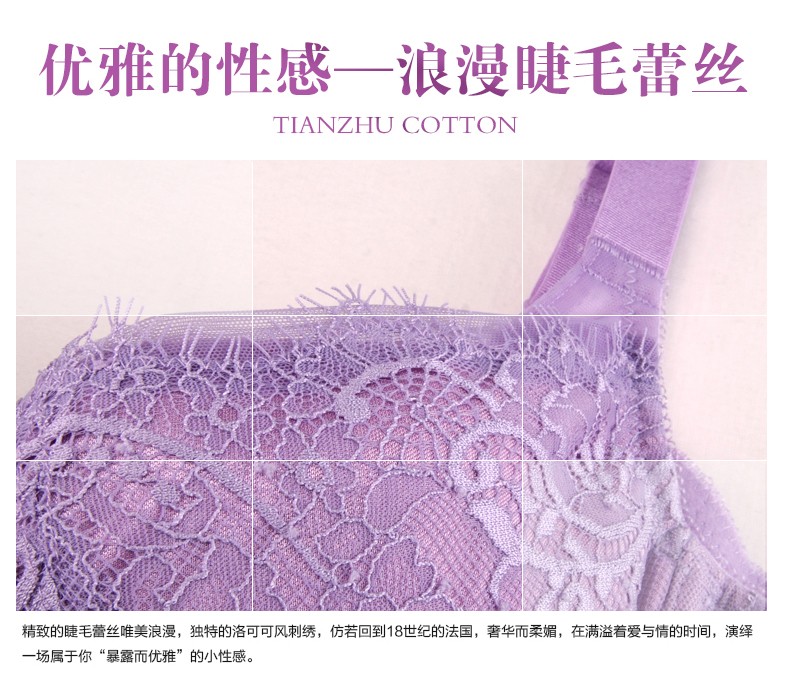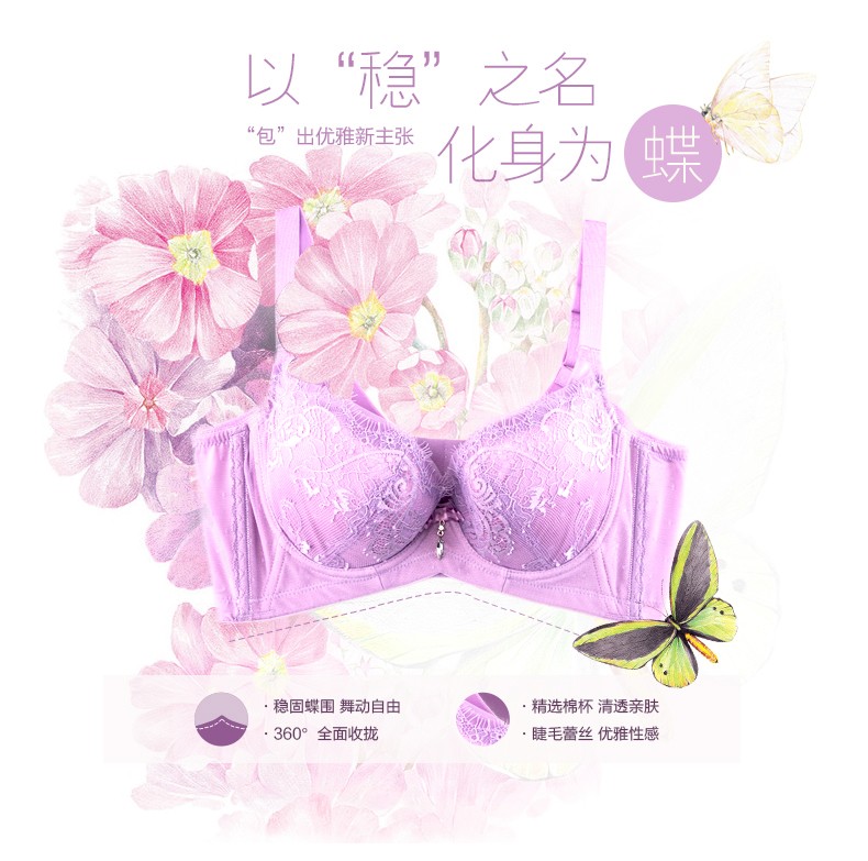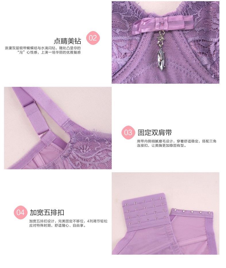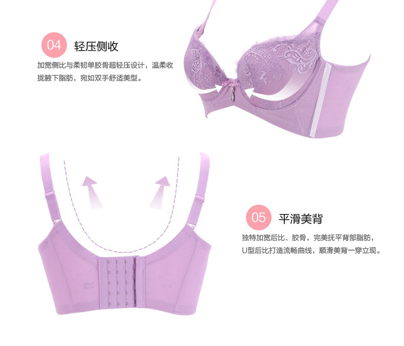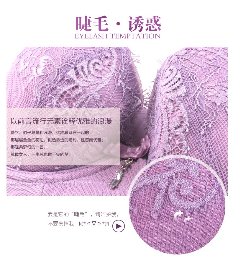 体会内衣BQ0893 性感睫毛蕾丝薄模杯款大码胸罩聚拢五排扣调整型美背文胸