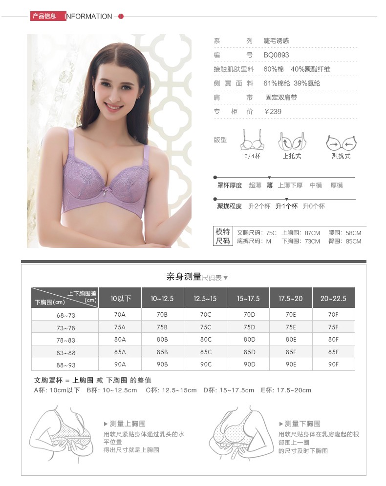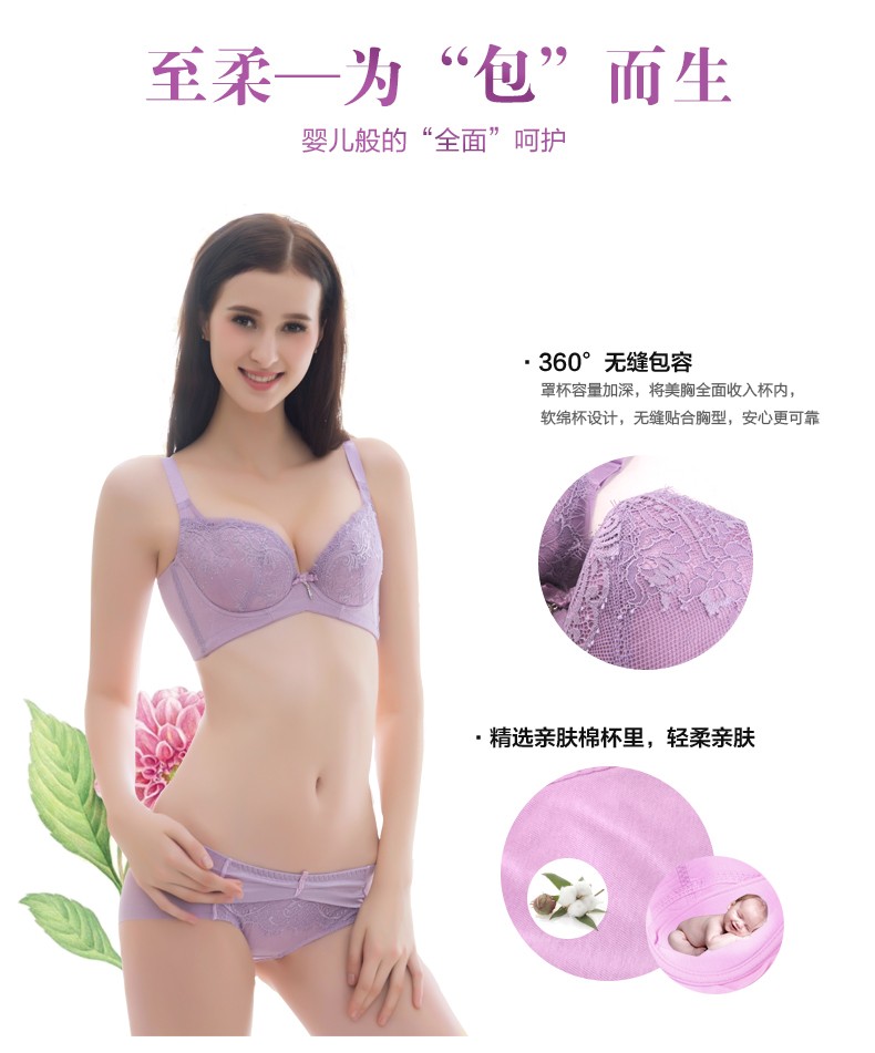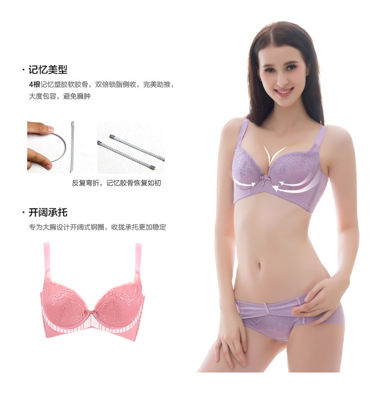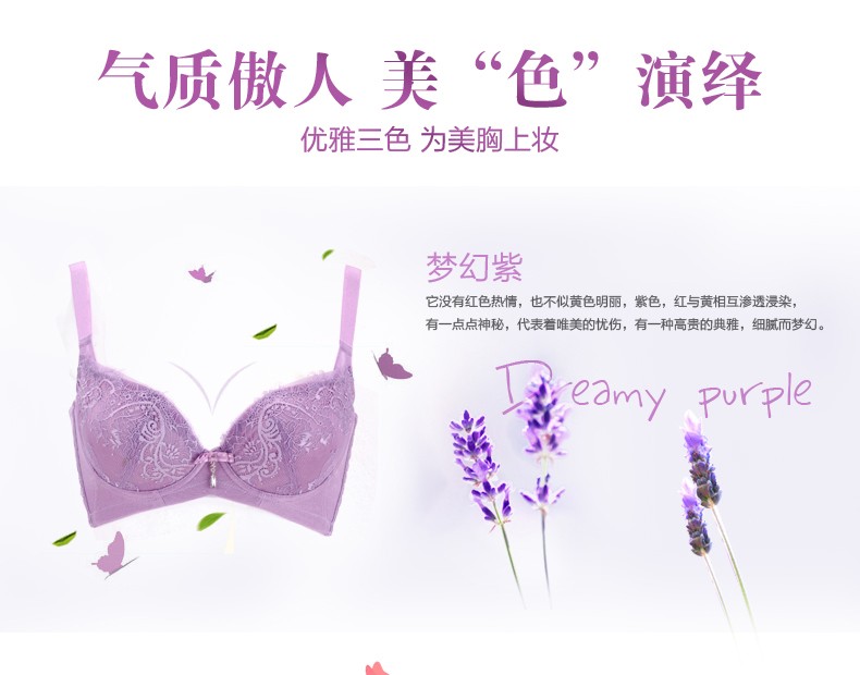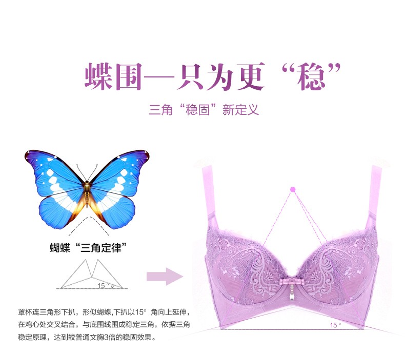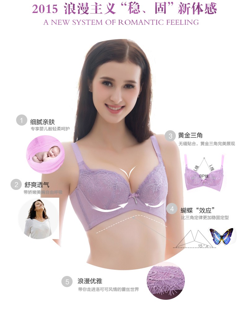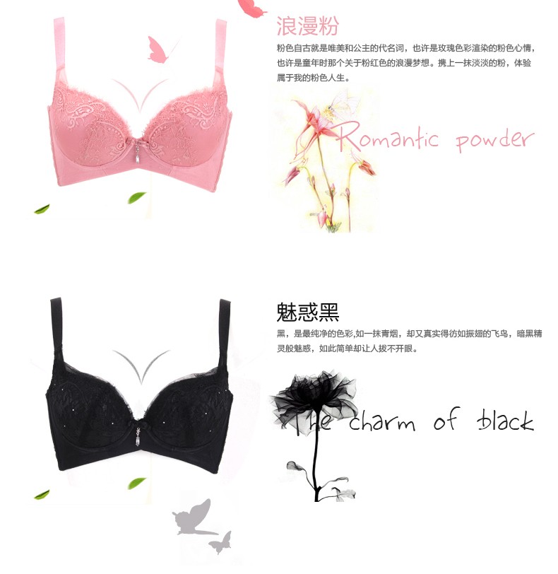 体会内衣BQ0893 性感睫毛蕾丝薄模杯款大码胸罩聚拢五排扣调整型美背文胸