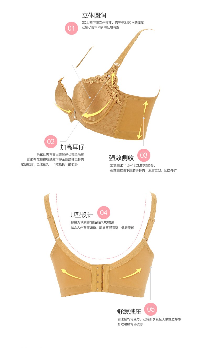 体会内衣BS0991 秋冬季简约光面无痕暗花刺绣小胸上薄下厚模杯聚拢调整型文胸