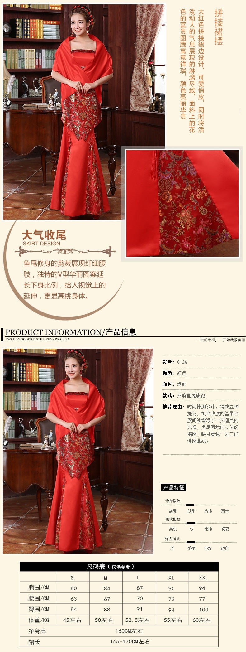 2016冬季新款旗袍 红色长款复古结婚敬酒服鱼尾婚礼新娘装新款