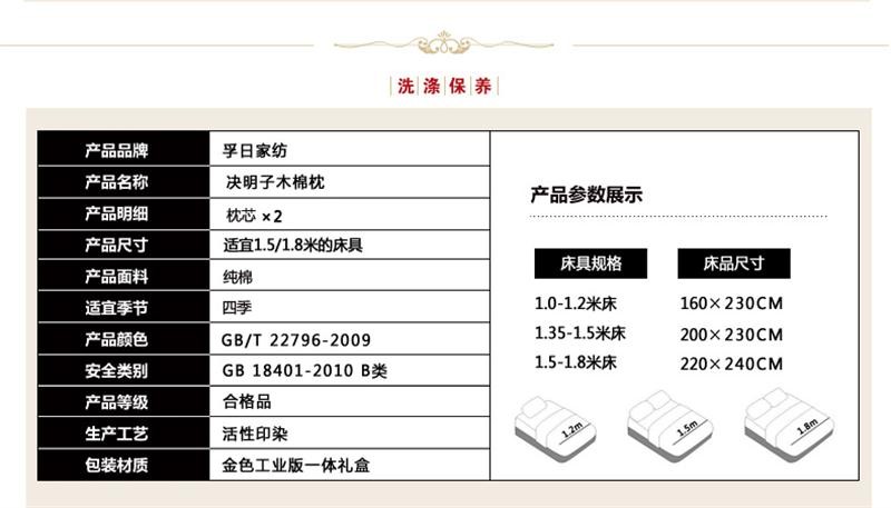 孚日家纺决明子木棉枕护颈椎健康定型成人全棉