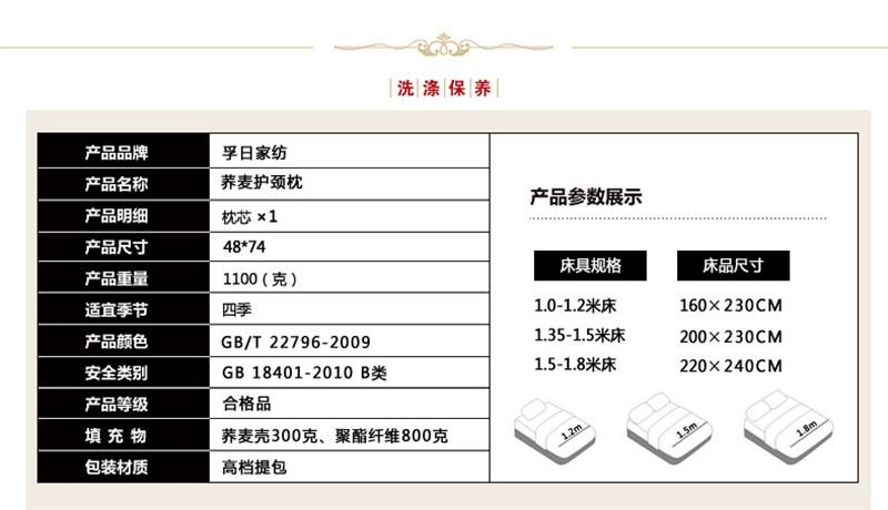 孚日家纺荞麦护颈枕护颈椎健康定型成人全棉