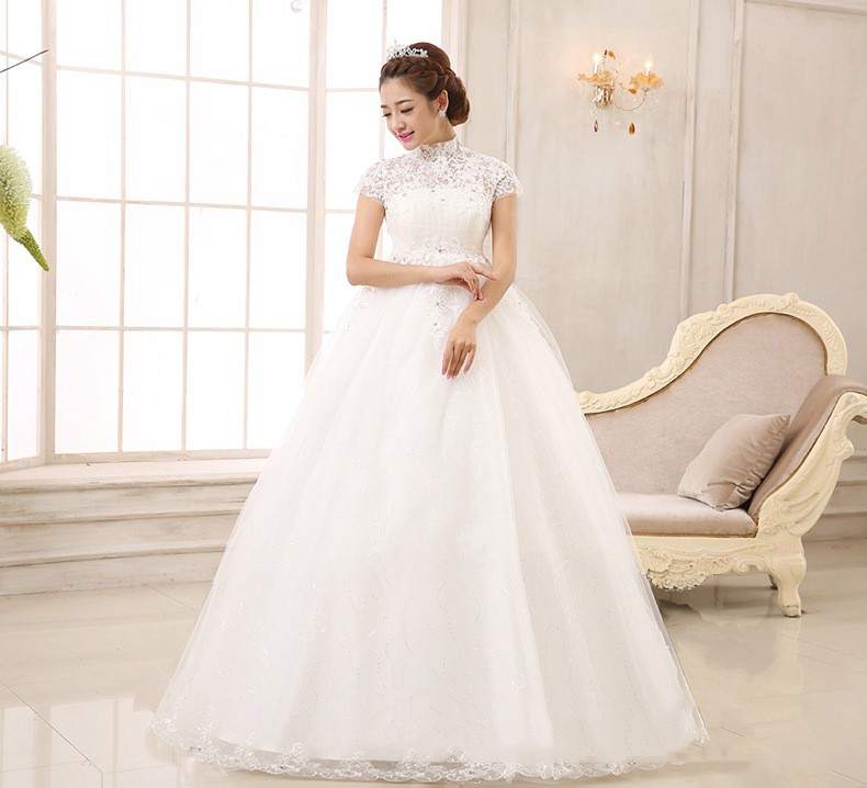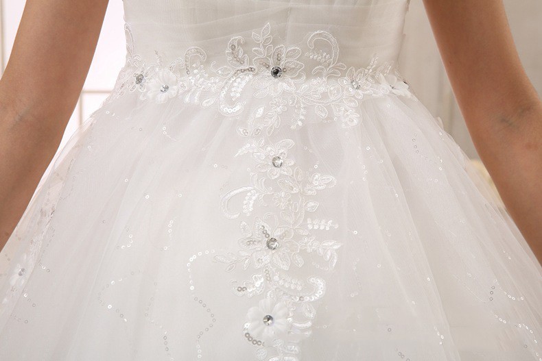 新娘一字肩婚纱礼服2016新款包肩蕾丝齐地韩版高腰孕妇长款新娘装