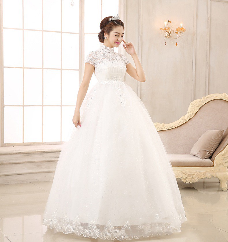 包肩蕾丝齐地韩版高腰孕妇长款新娘装