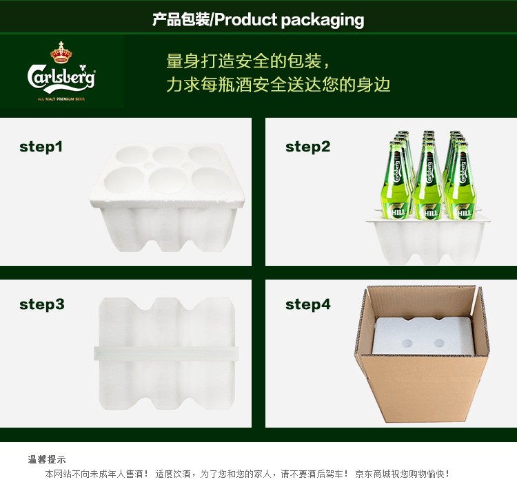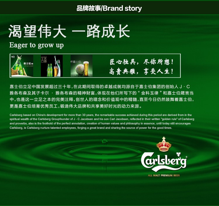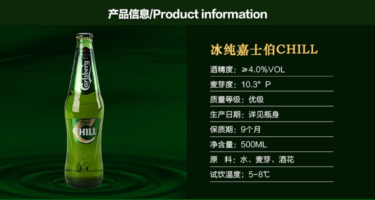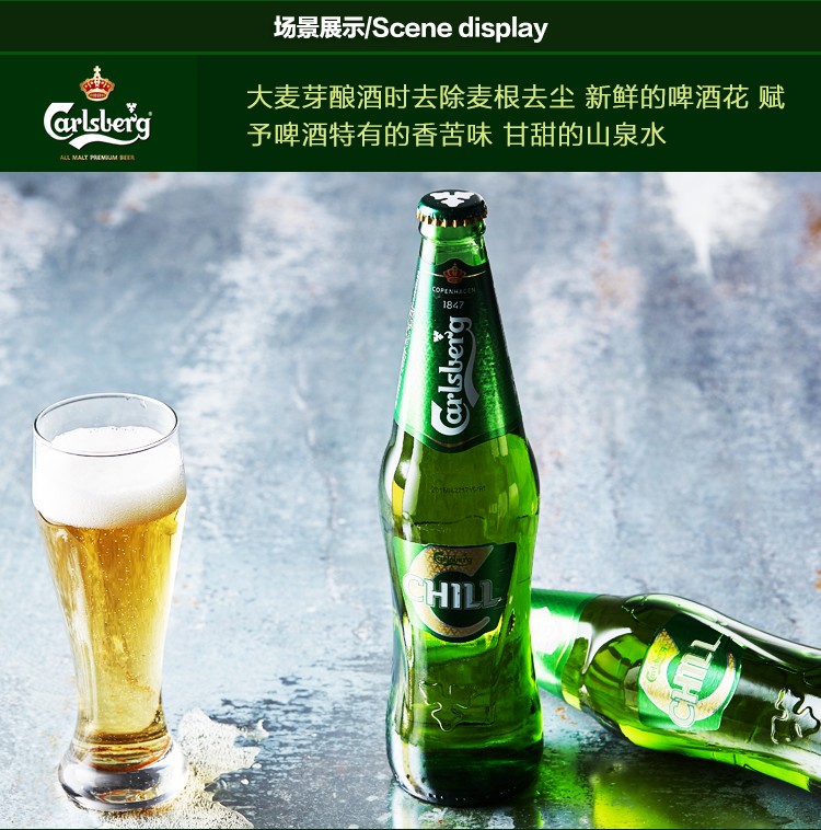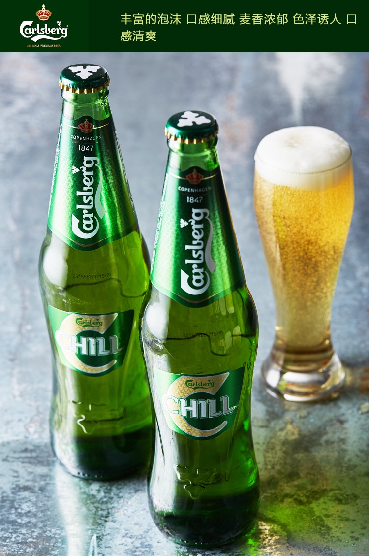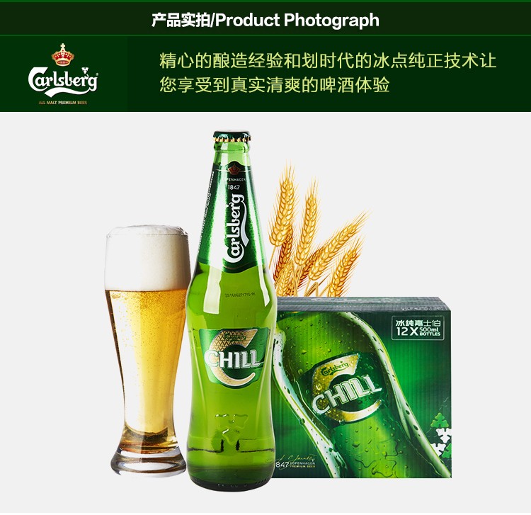 嘉士伯Carlsberg 冰纯啤酒 500ml瓶装 12支装整箱