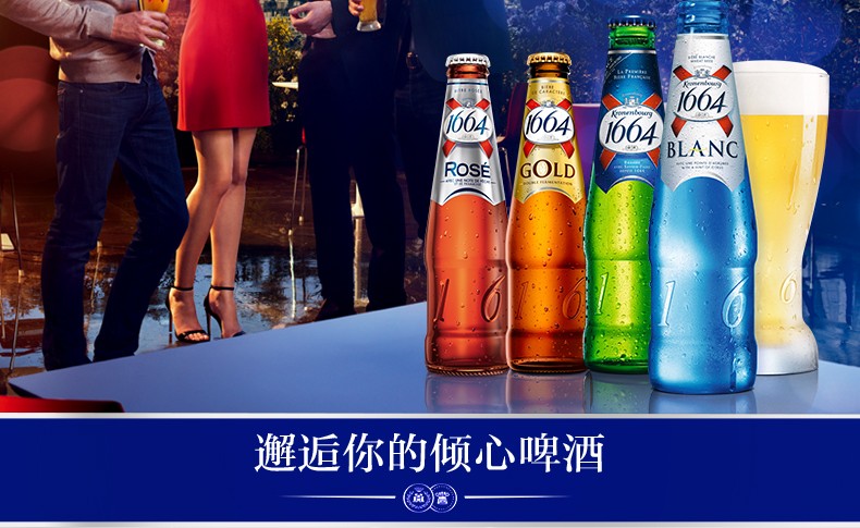 嘉士伯官方法国进口克伦堡凯旋1664白金标玫瑰牌啤酒组合装24瓶