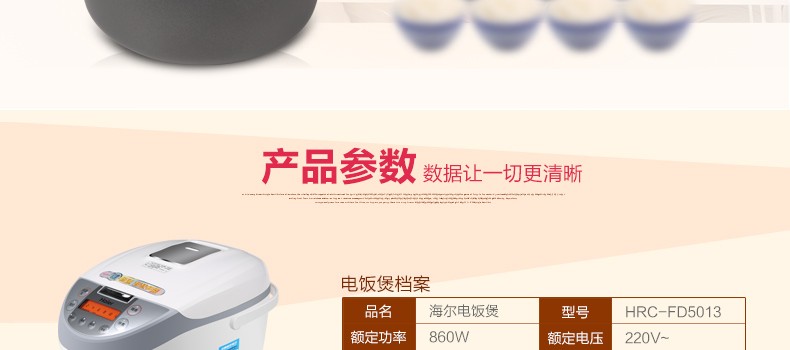 海尔HRC-FD4013/5013智能电饭煲迷你电饭锅4L/5L