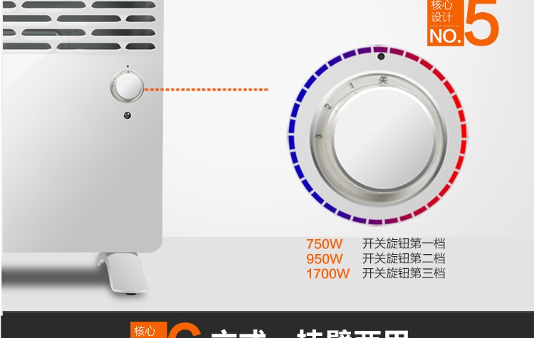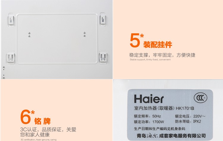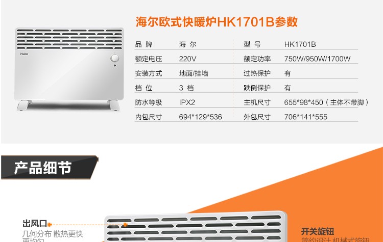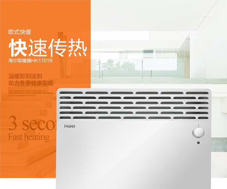 海尔HK1701B家用快暖炉电暖器静音节能壁挂取暖器对流电暖气