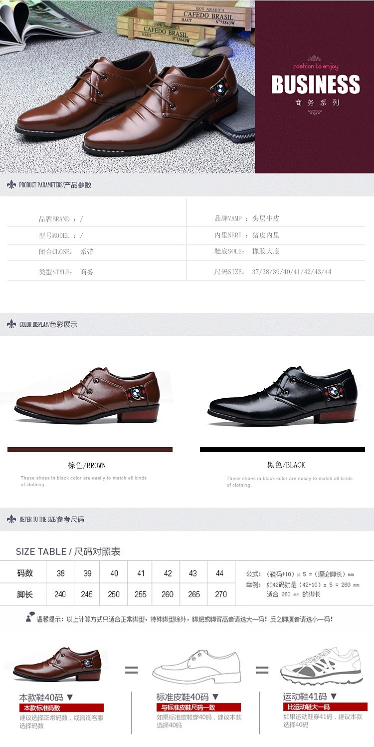 英伦商务皮鞋 尖头系带男鞋