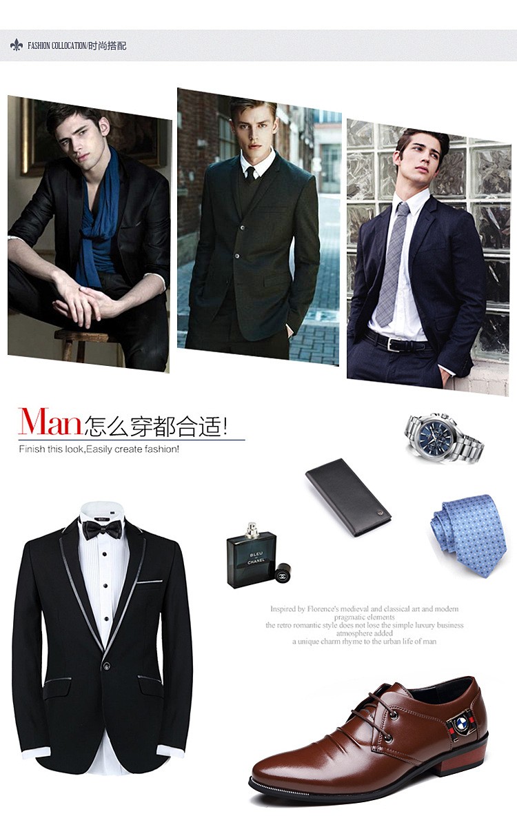 2016秋季新款男士英伦纯色金属装饰商务真皮皮鞋尖头系带男鞋