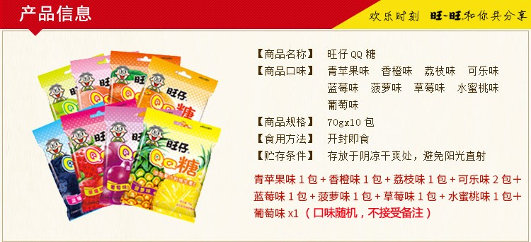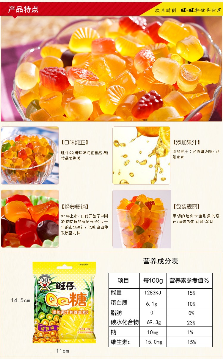 旺仔QQ糖休闲零食糖果果汁维生素C童年味 70g*60袋 多口味