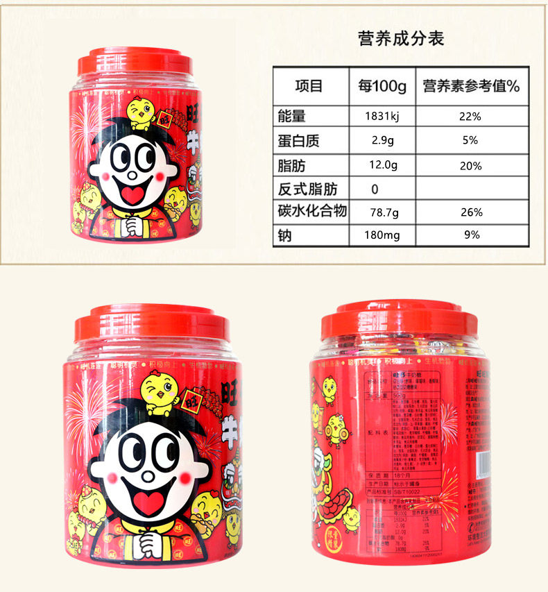 旺仔牛奶糖罐装桶装500g*6桶综合口味结婚喜糖散装零食糖果