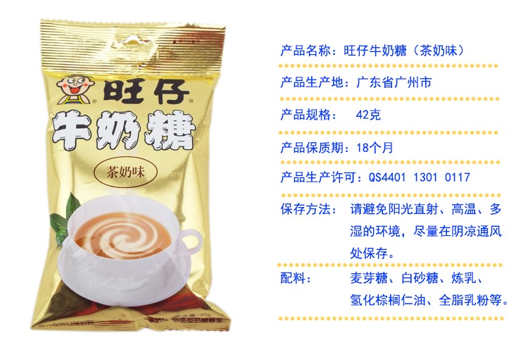 旺旺 旺仔牛奶糖 儿童糖果 结婚喜糖年货必备 奶茶味 42g*20袋