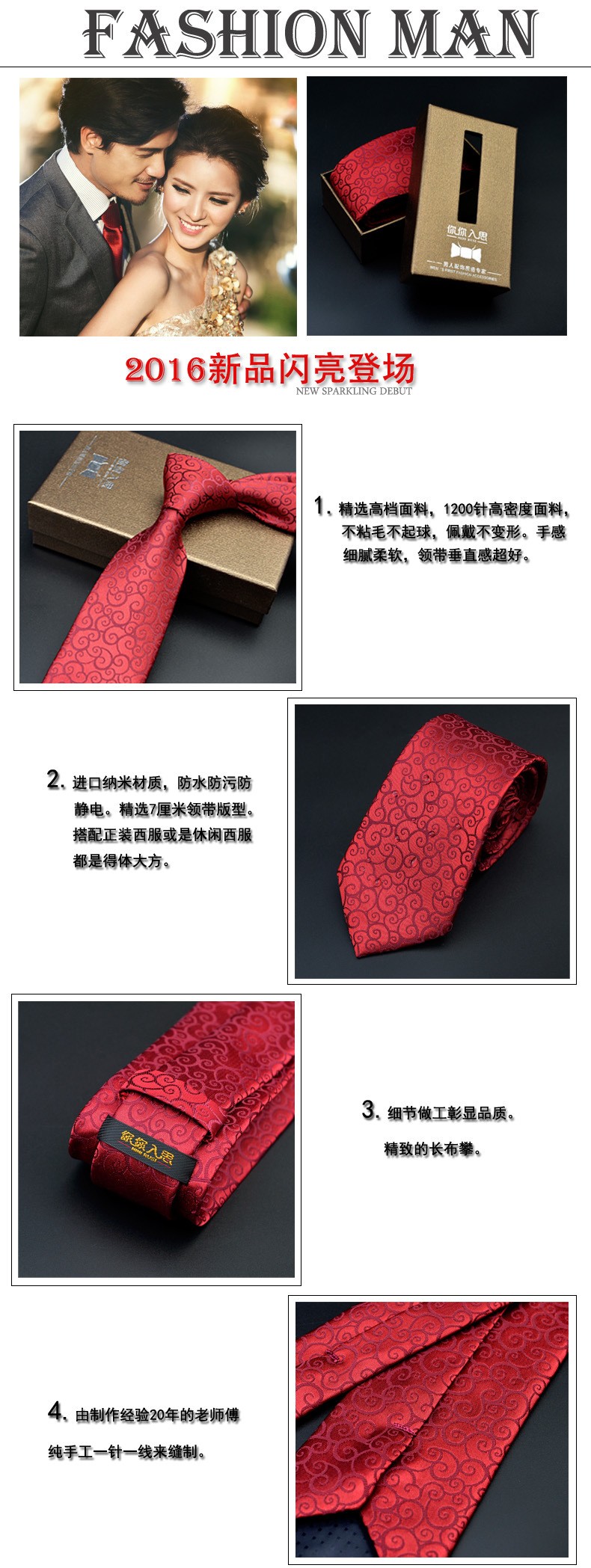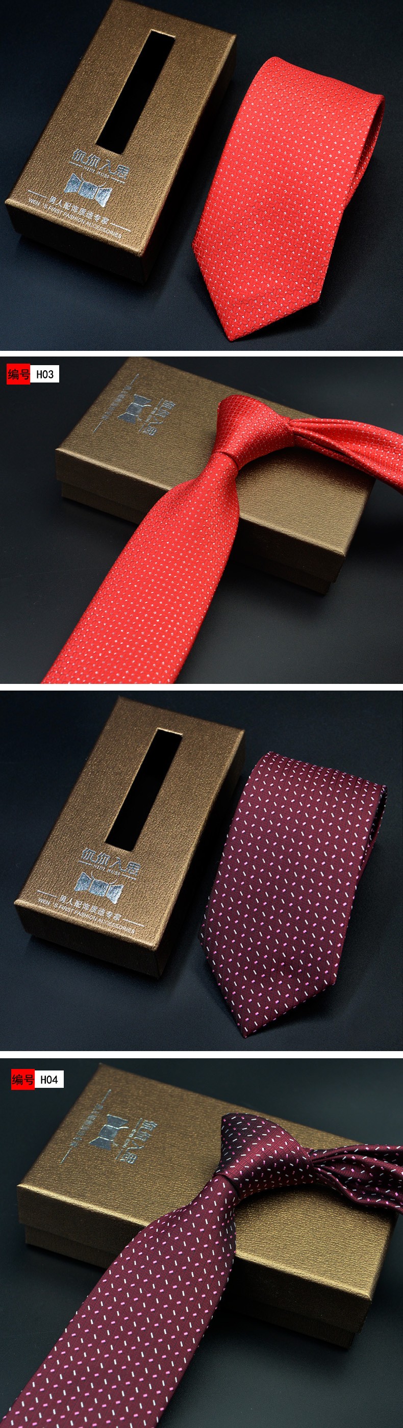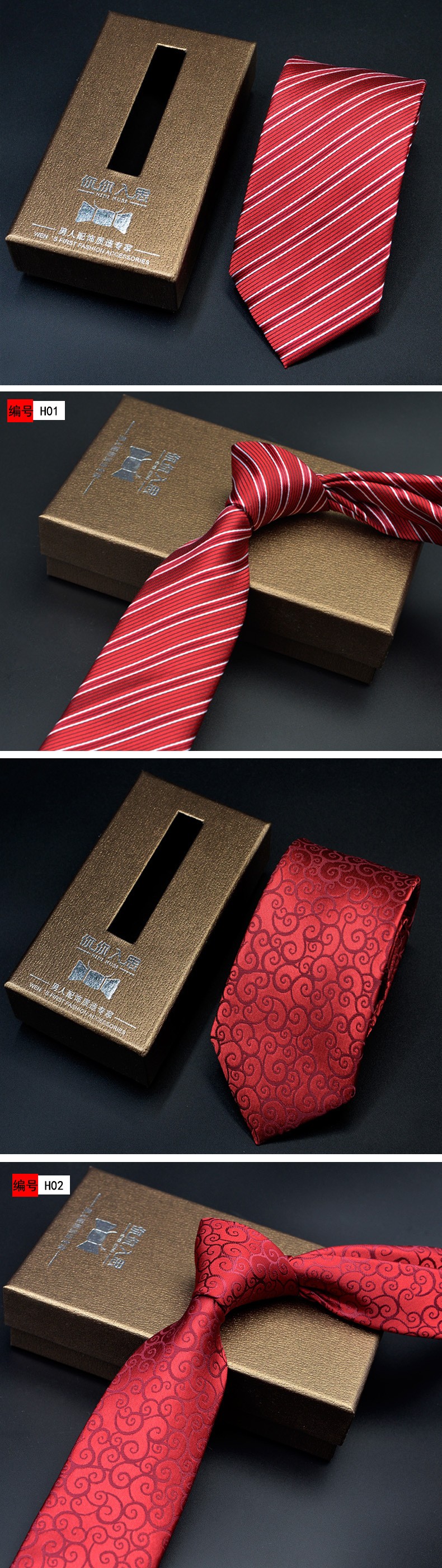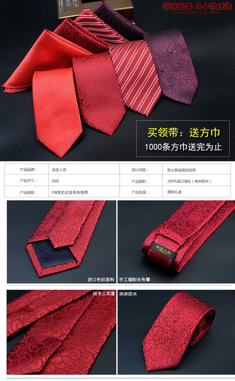 男士领带 结婚新郎 红色系多色 正装商务提花韩版领带