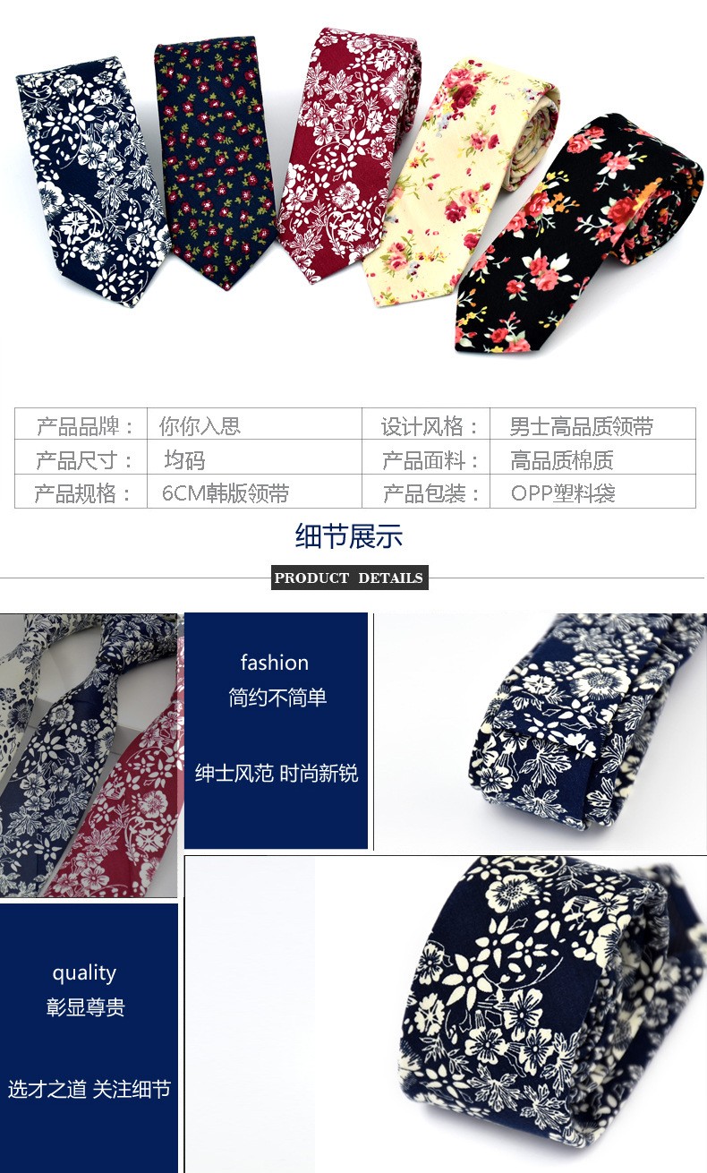 男士棉印花欧美风时尚韩版结婚领带 新郎伴郎主持6CM