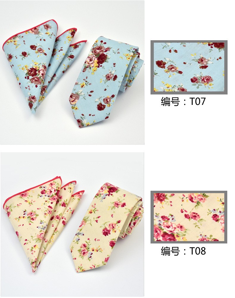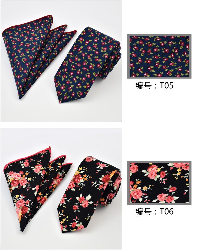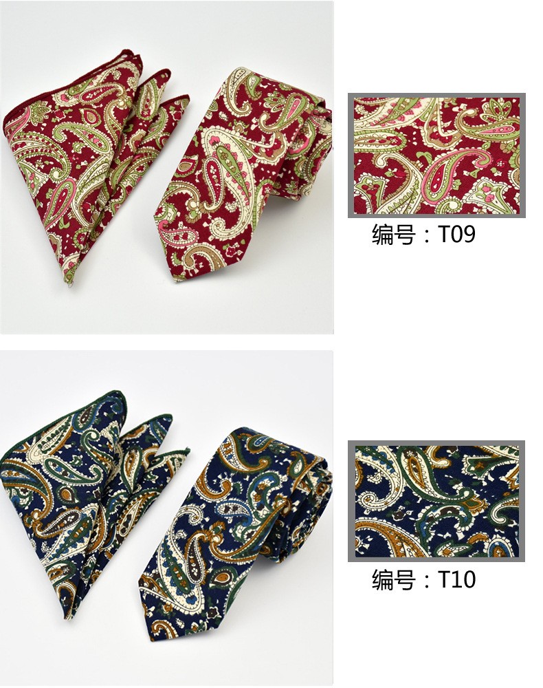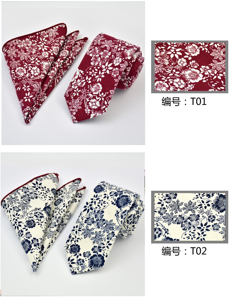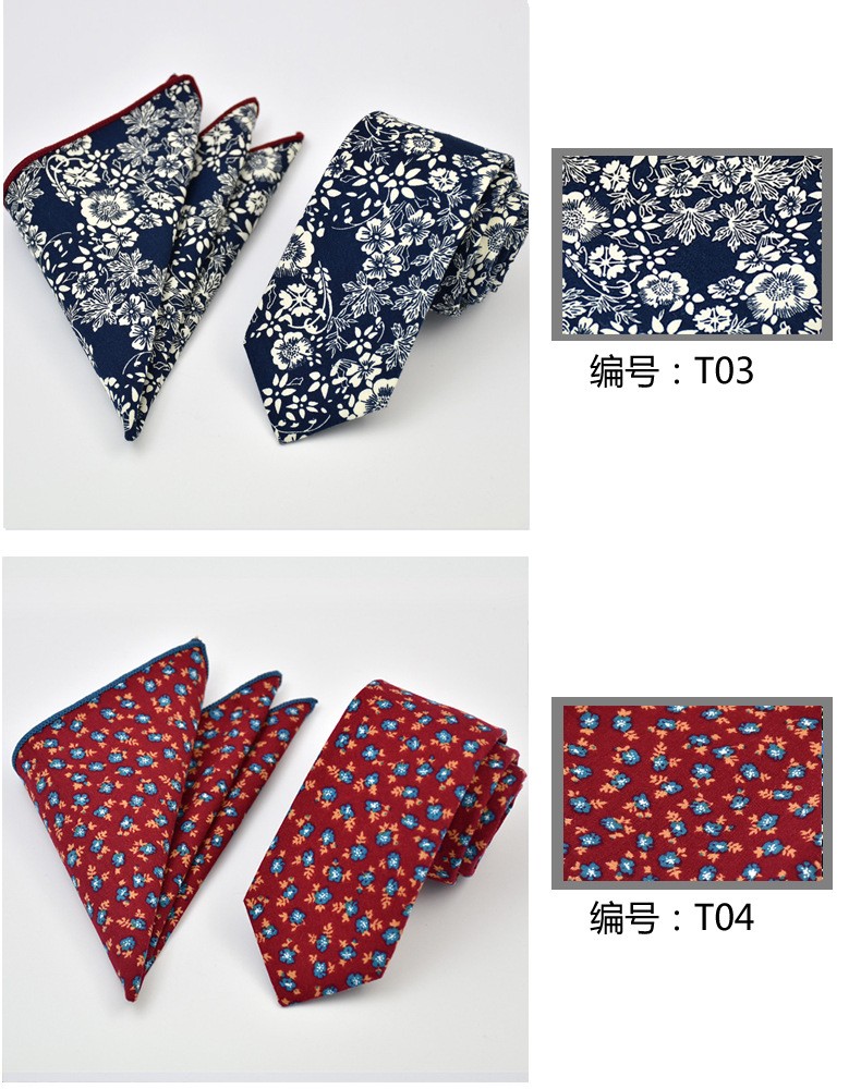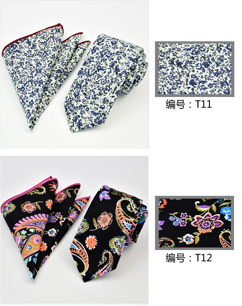 领带套装 印花棉领带口袋巾新潮 套装两件套