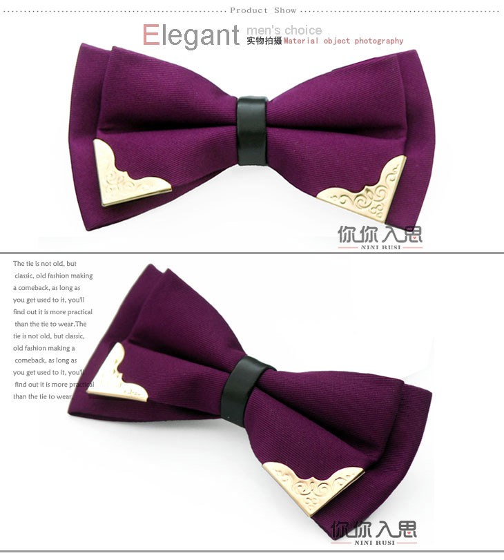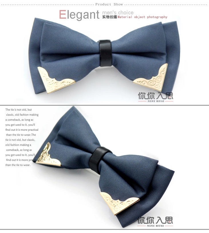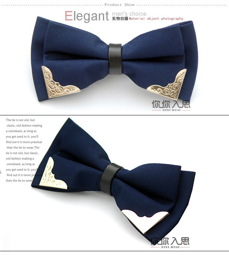 金属镶边领结男士韩版正装婚礼派对领结 涤纶丝休闲领花