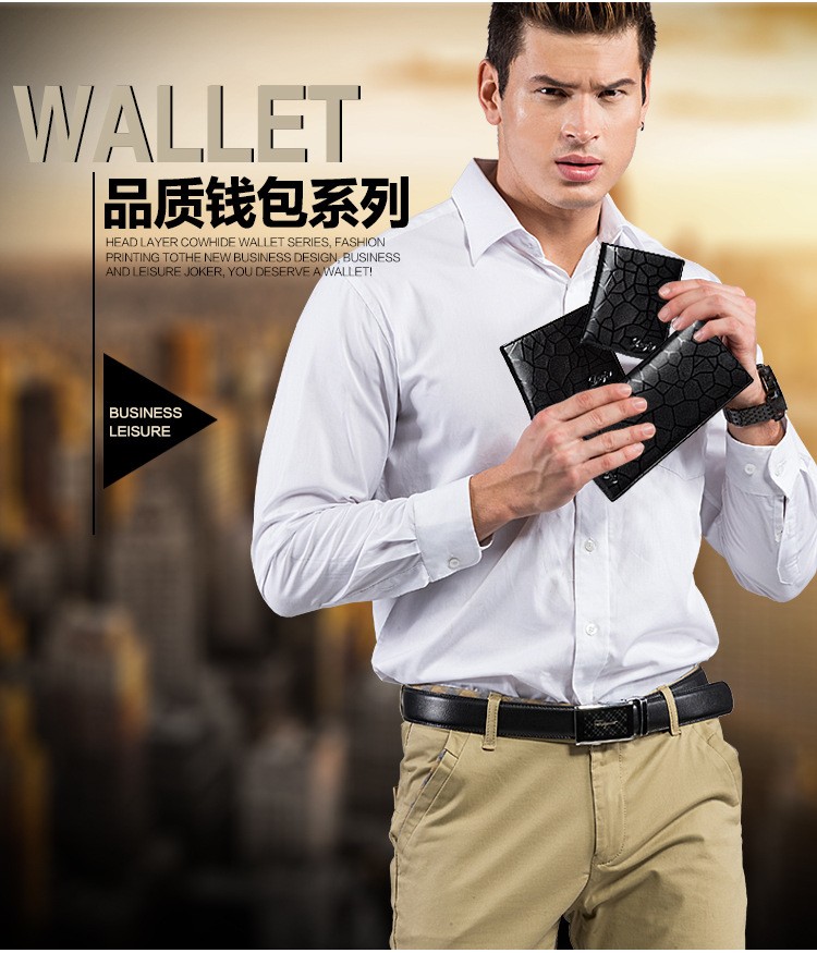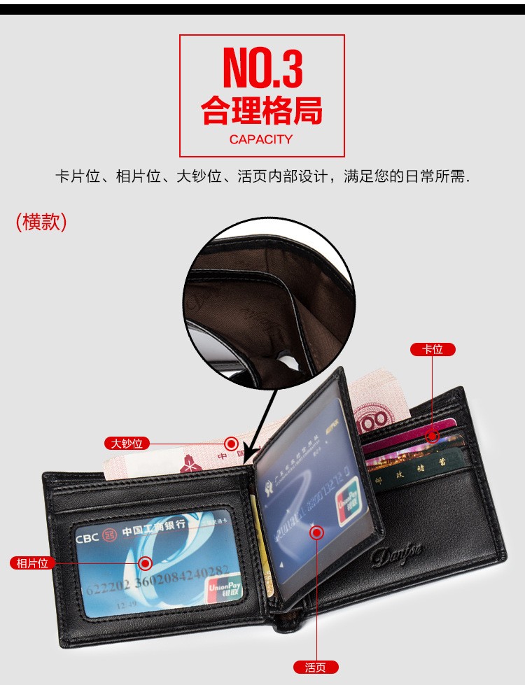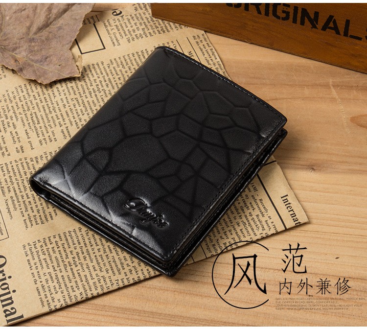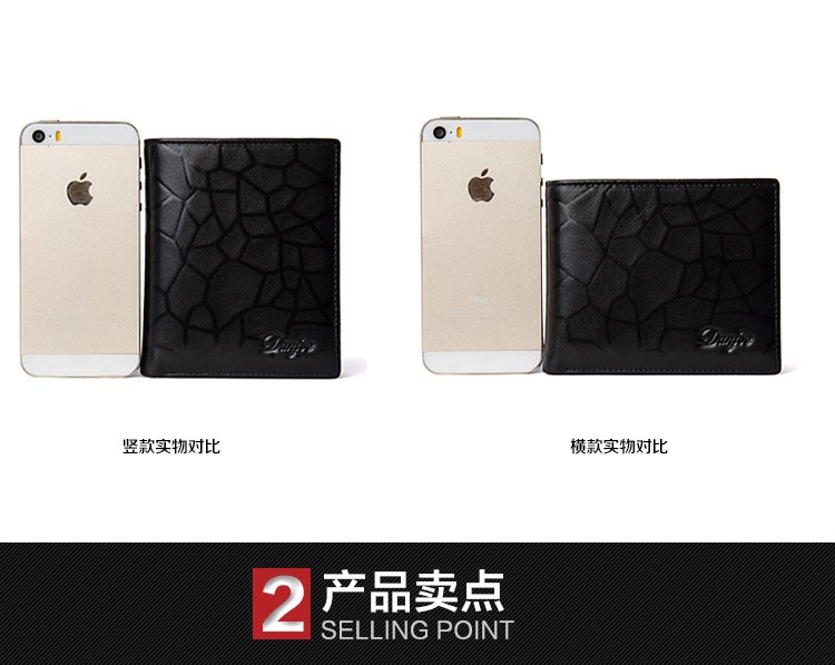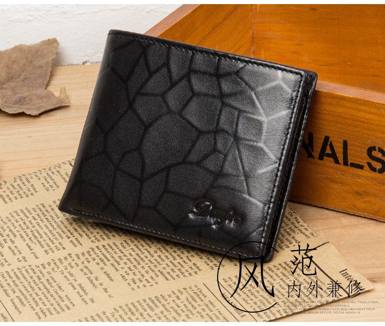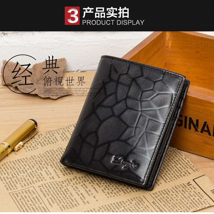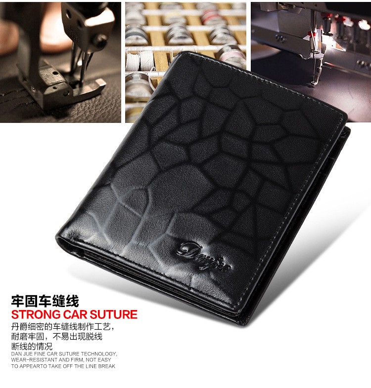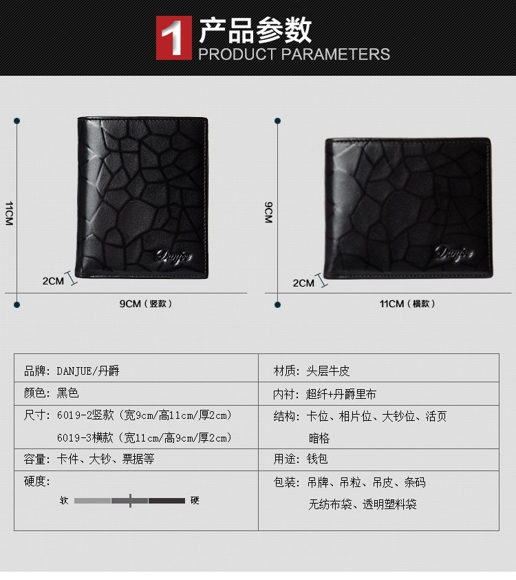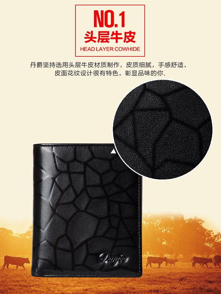 丹爵(DANJUE)2017新款男士钱包头层牛皮时尚压花纹理短款真皮钱包卡包手包D6019-2-3