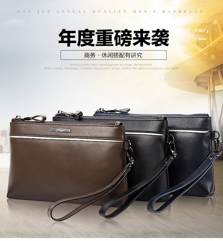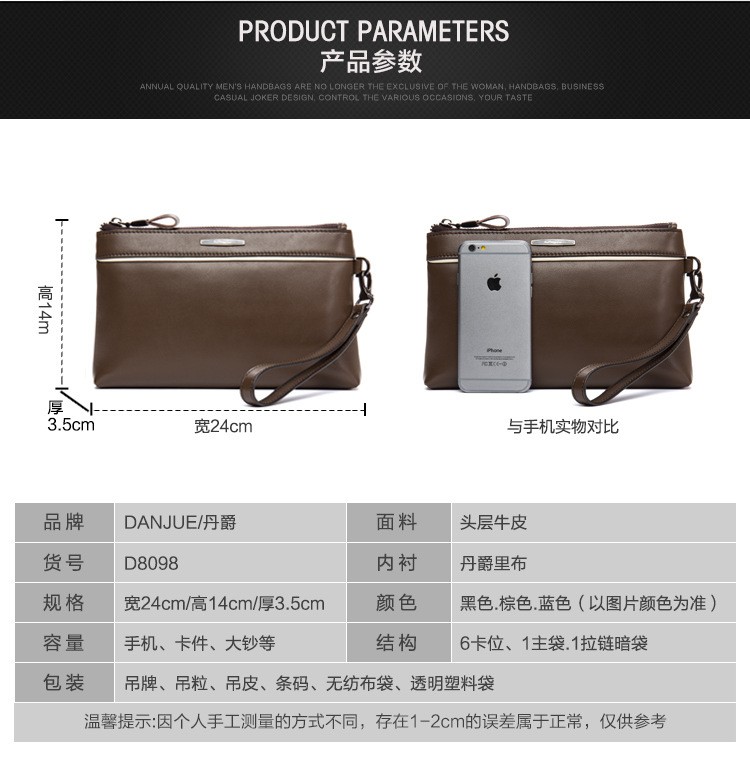 丹爵(DANJUE)商务休闲手包钱包卡包时尚款潮流包头层牛皮男士手拿包D8098