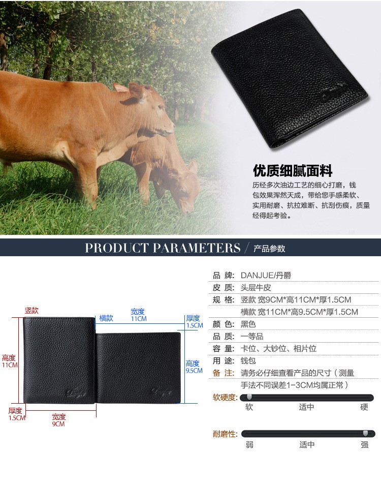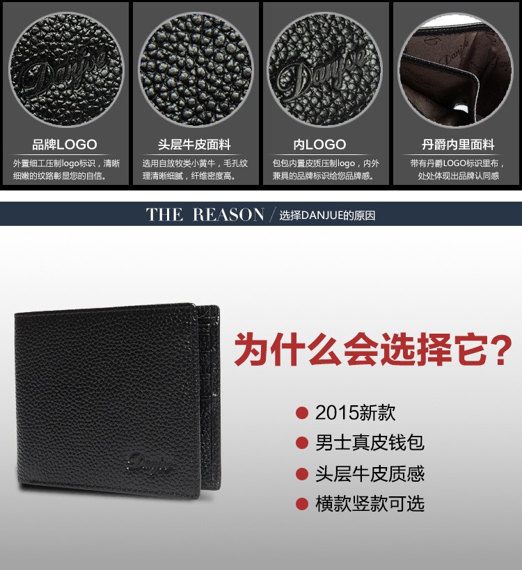 丹爵(DANJUE)全头层牛皮多卡位真皮钱包男士横竖款钱夹