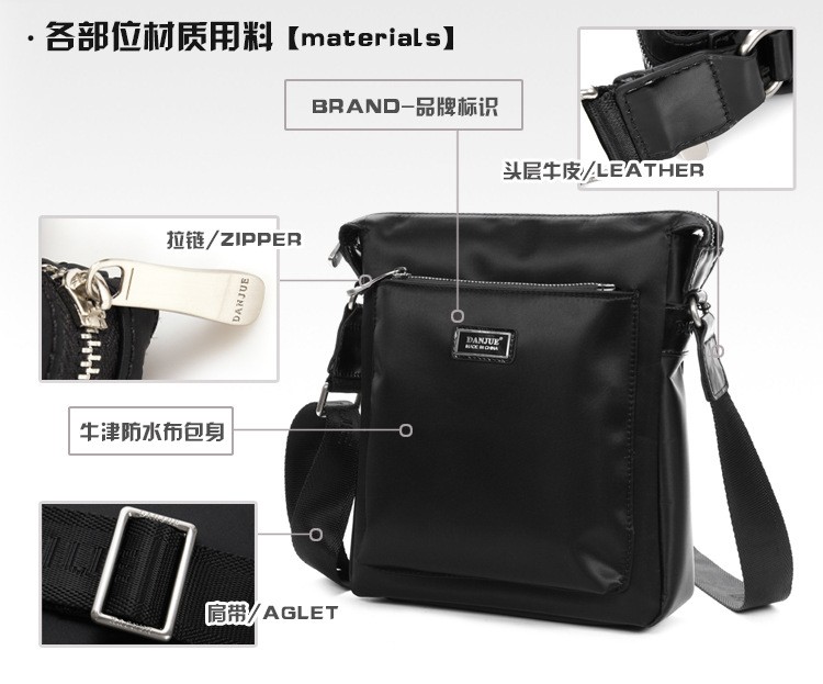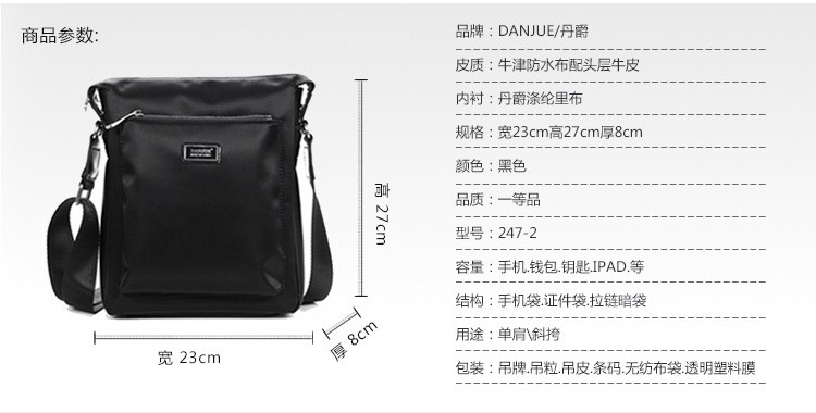 丹爵(DANJUE)牛津配头层牛皮竖款单肩包男士斜挎包时尚休闲包247-2