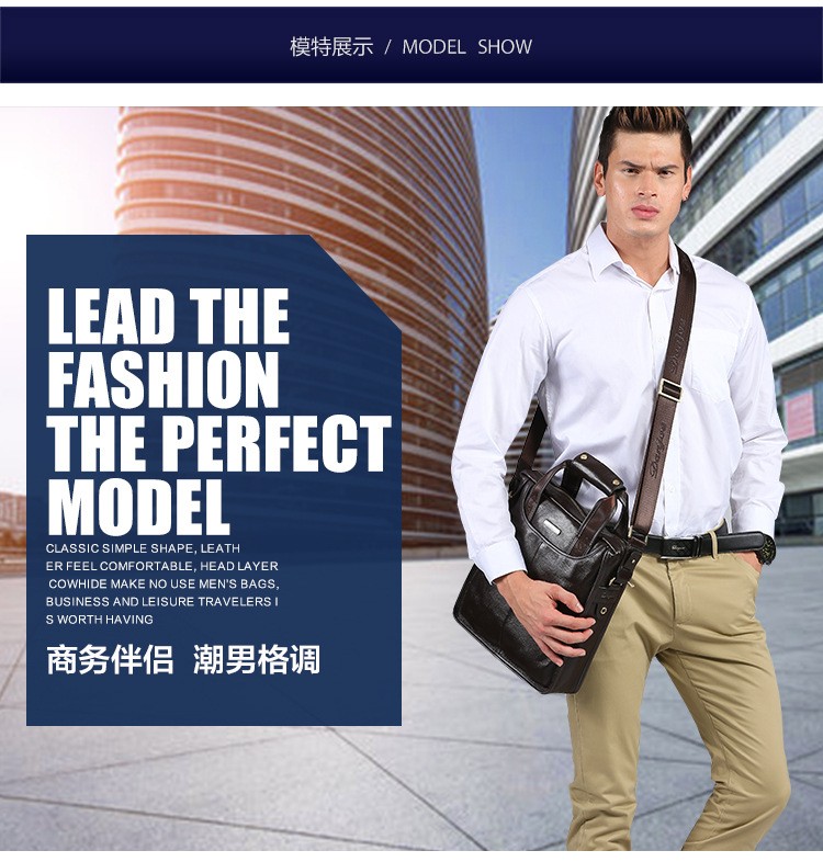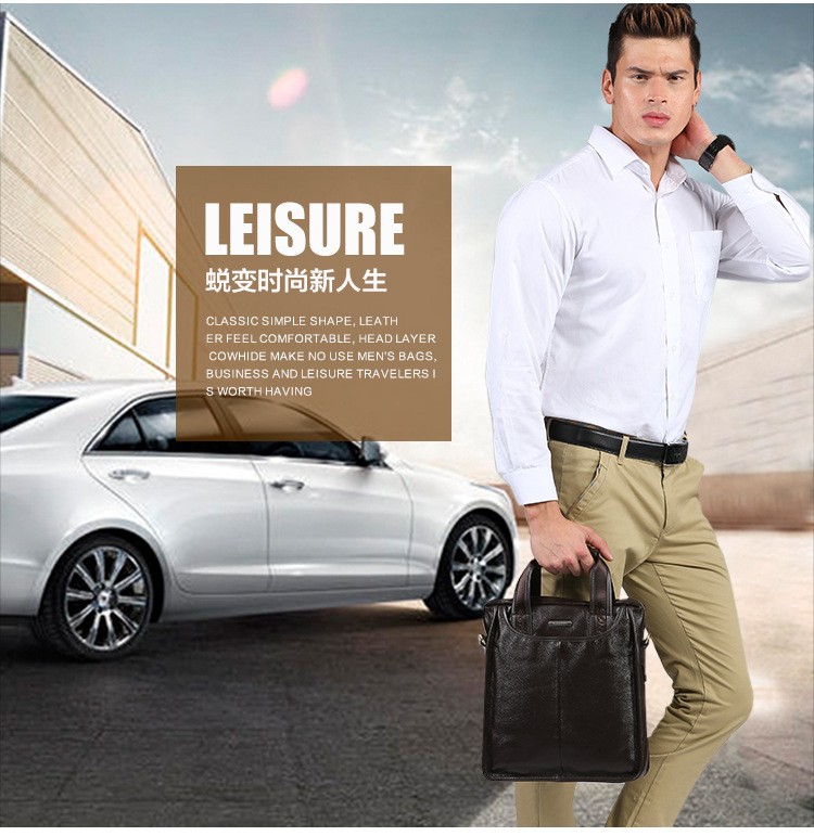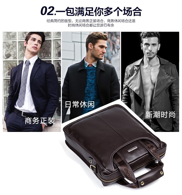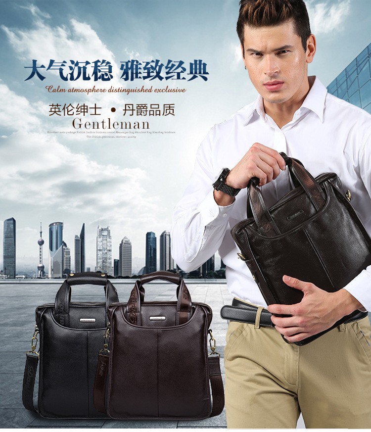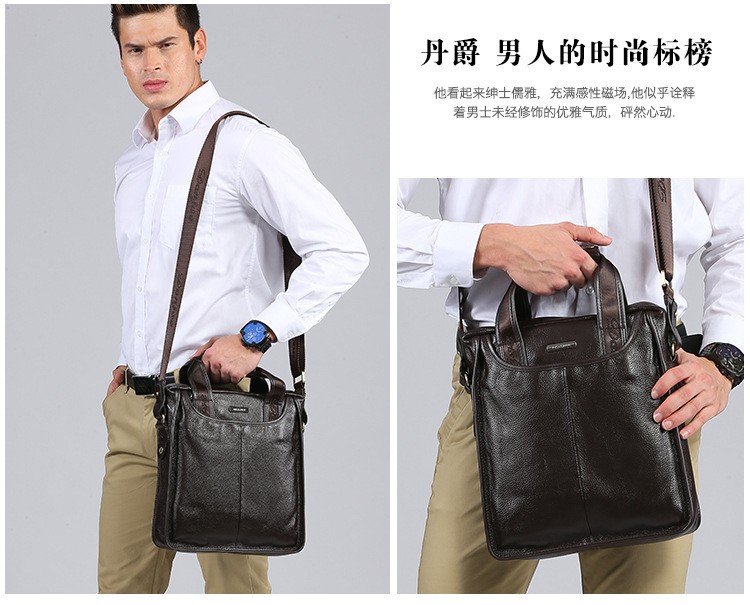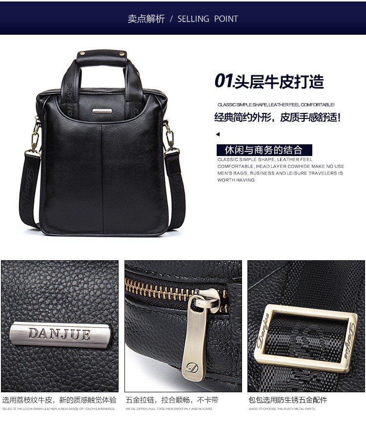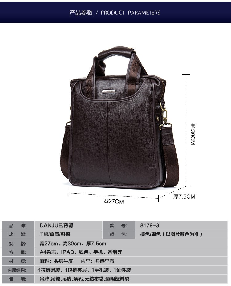 丹爵(DANJUE)新款牛皮单肩包真皮男士商务手提包热卖爆款男包8179-3