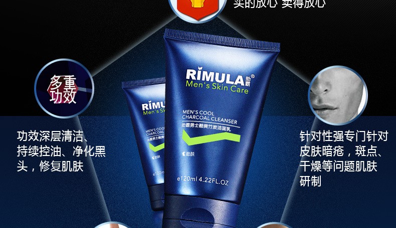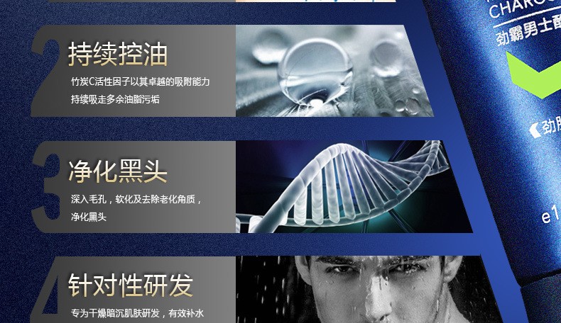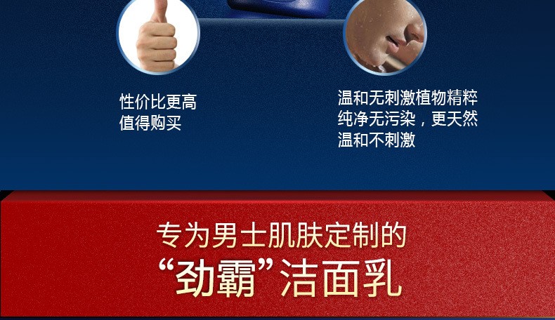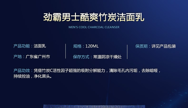劲霸男士洗面奶酷爽竹炭去黑头控油护肤洁面乳深层清洁