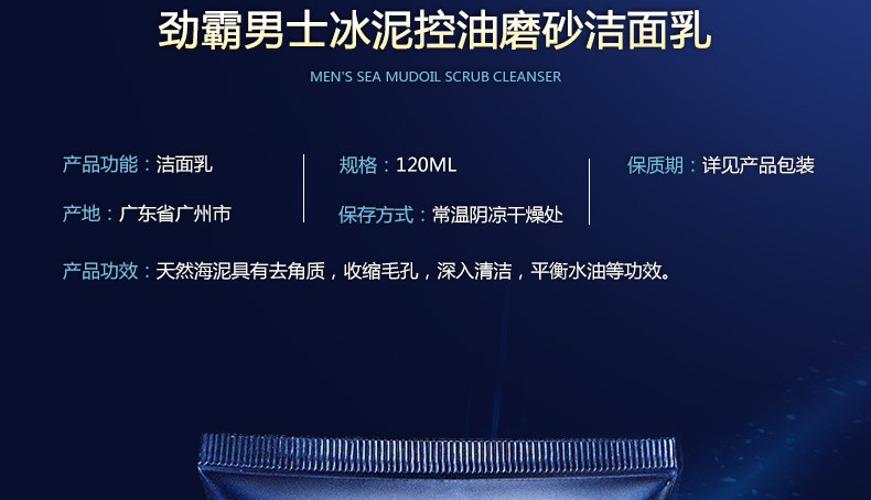劲霸男士洗面奶冰泥控油护肤品磨砂去角质洁面乳深层清洁